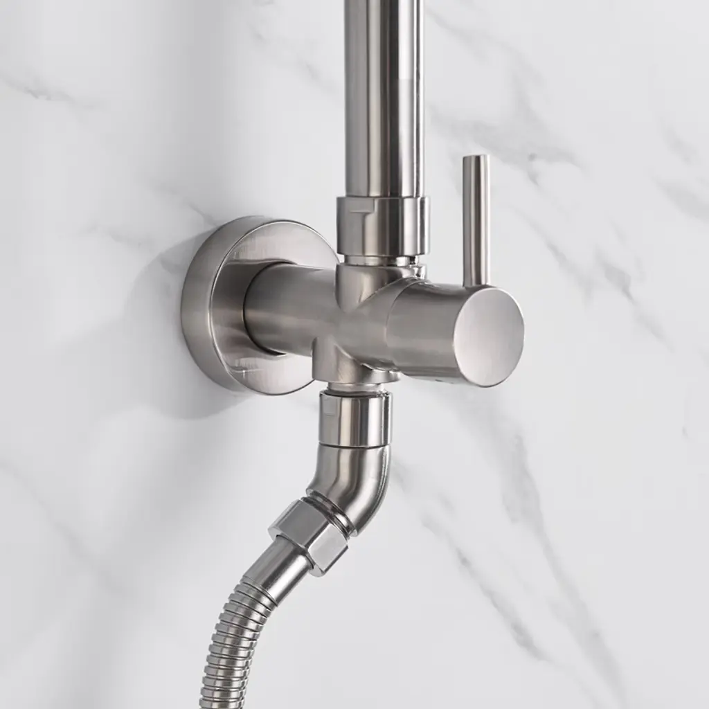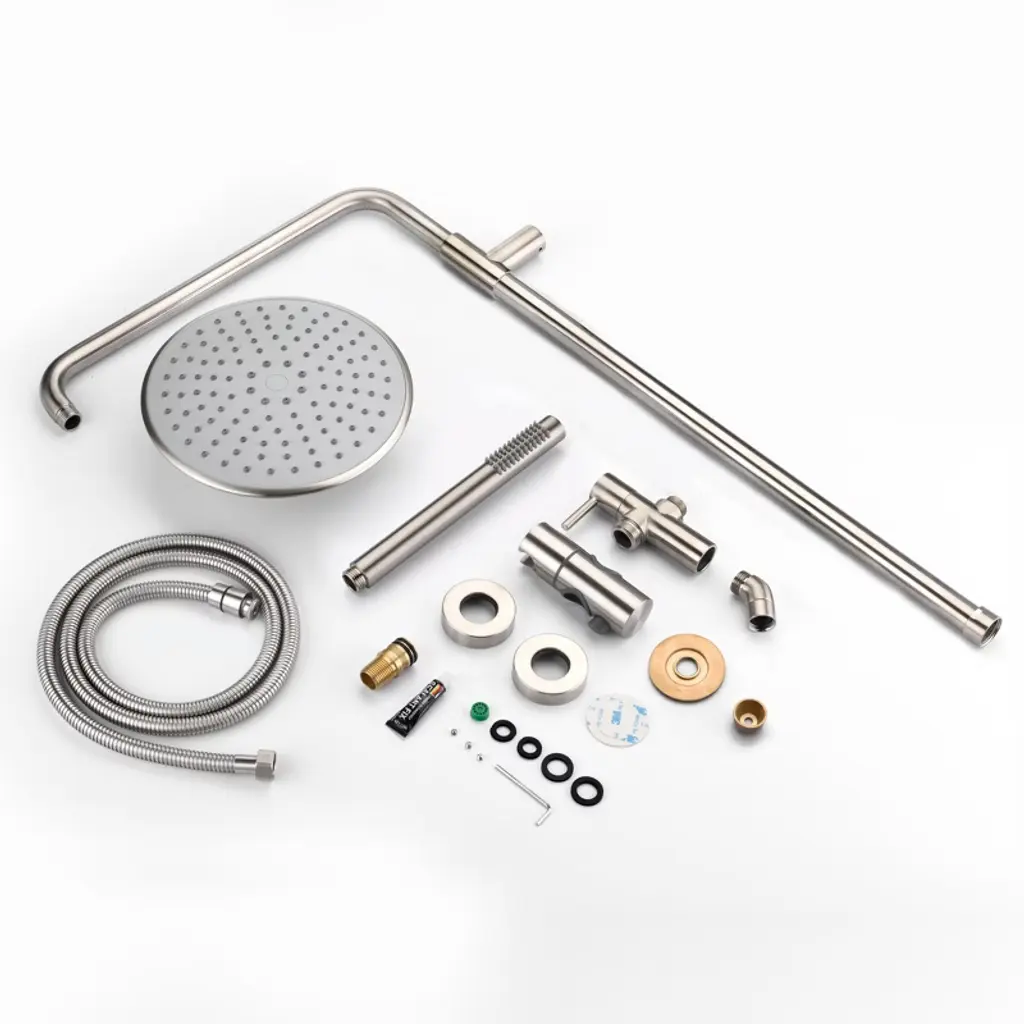 The 3-in-1 versatility of this SUMERAIN shower system allows everyone in the family to enjoy a truly personalized shower. Indulge in the drenching spray of the 8” Rain showerhead and the brass hand shower, easily switching between both with the accessible diverter. Designed for hassle-free installation using existing plumbing, eliminates the need to drill or damage the tile, transforming an ordinary shower in an extraordinary spa experience without difficulty. 1.8GPM(6.8L/MIN)showerhead and hand shower flow rate,product listed in the CEC modernized appliance efficiency database system and DOE list, It has WaterSense certification and compliant with standard: EPA WaterSense specification for showerheads(version 1.1,July 26,2018). This tub and shower system also has ICC-ES PMG certification and is compliant with standard: ASME A112.18.1/CSA B125.1-2018, plumbing supply fittings(the same standard as cUPC certification). Model: S3235NI-TAProduct Name: Retrofit Rain Shower SystemMaterial: Stainless Steel, Brass, Acrylonitrile Butadiene Styrene (ABS)Finish: Brushed Nickel SUMERAIN is a established name in the US plumbing industry which puts great emphasis on stylish and durable. Perfection does not always have to be expensive. SUMERAIN masterful products are high quality and inexpensive. Over three decades of manufacturing experience has provided us with the extensive market knowledge and the ability to offer new products at reasonable expense. The key to our success is intelligentization- we have rapidly expanded into exciting new products groups to be at the forefront of the market. We are dedicated to bringing you the latest designs utilising the most up-to-date technology. The new product design team benefit from a development system audited to ISO9001 standards, meaning each product is designed, sourced, evaluated and warehoused in a high standard. About this item specificities 1.Easily retrofit your existing shower without a remodel, connects to water supply at your current showerhead location and uses existing hot/cold shower valve. Drill-free and tool-free design eliminates the need to drill or damage the tile.>2. Brass Diverter sturdy construction built to last. Invigorating brass hand shower with 59" double-interlocking stainless steel hose. High standard brushed nickel finishing surface never rust, easy to clean and maintain.3. Accessible diverter easily switches between showerhead and hand shower water outlets.4. All hardwares and parts are included: shower arm, rain showerhead , slide bar, hand shower, diverter, shower hose, escutcheon, fixing fittings. Connetors are standard 1/2 NPT tapered threads, compatible with most exsiting shower systems.5. On and off valve and trim kit not included.