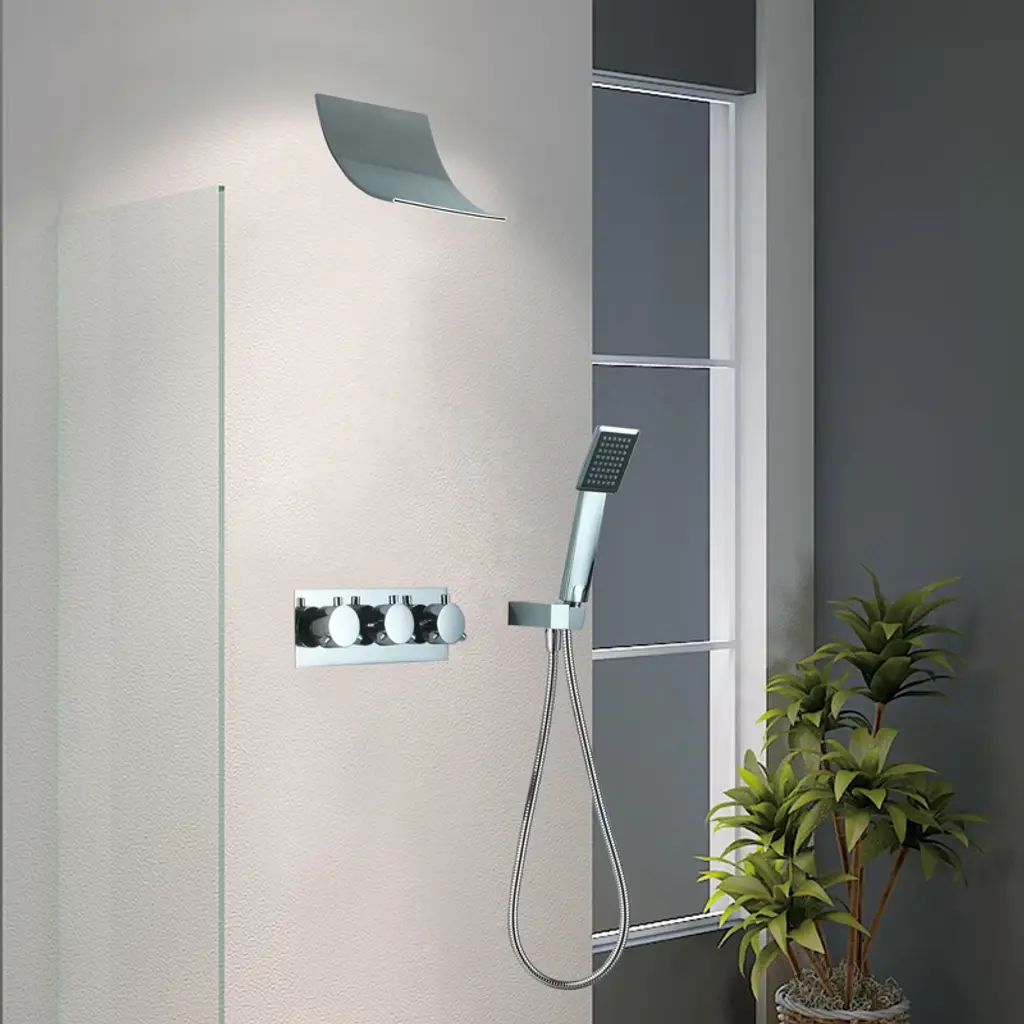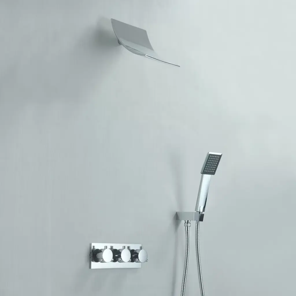 Sumerain Chrome Shower Faucet Set, Shower System Waterfall Showerhead, Hand Shower And Brass Valve