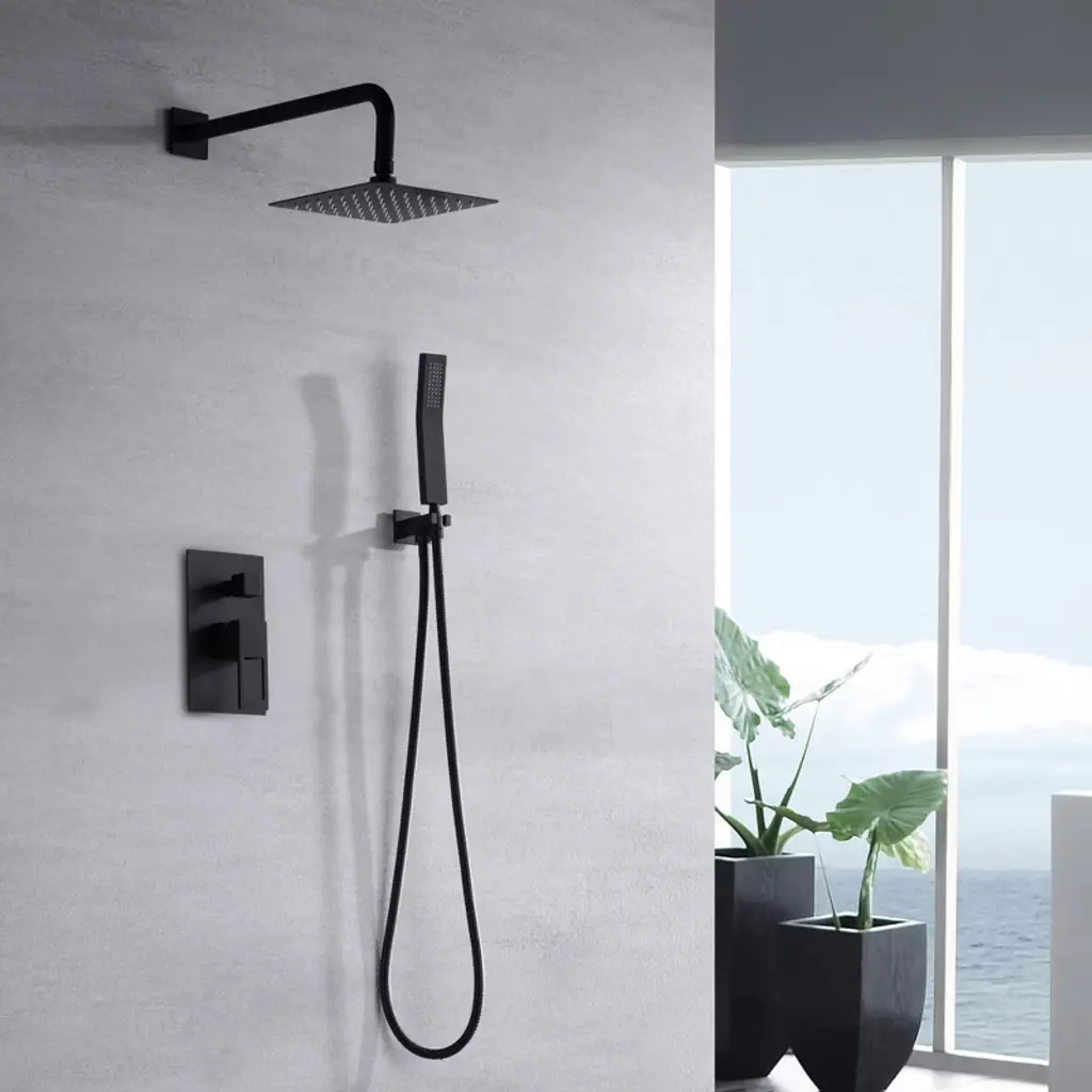 Brimming with modern flair and verve, the SUMERAIN shower set transforms any shower into the ultimate personal spa. The comprehensive system comprises of both a shower head and a hand shower. The former is paired with a stainless steel shower arm, and the latter comes with a 59 inches shower hose. The water temperature and volume are controlled through the dual-function valve and trim set, which incorporates a lever handle and a diverter knob. The SUMERAIN Shower Set with scratch and tarnish-resistant surfaces for a lifetime, a long-lasting finish that will retain its shine for years to come. 1.8GPM(6.8L/MIN)showerhead and hand shower flow rate,product listed in the CEC modernized appliance efficiency database system and DOE list, It has WaterSense certification and compliant with standard: EPA WaterSense specification for showerheads(version 1.1,July 26,2018). Rough-in valve, showerhead, handhled shower, shower holder and hose also has ICC-ES PMG certification and is compliant with standard: ASME A112.18.1/CSA B125.1-2018, plumbing supply fittings(the same standard as cUPC certification). Model: S3226DI-B-TAProduct Name: Rain Shower SystemMaterial: Brass, Stainless SteelFinish: Matte Black SUMERAIN is a established name in the US plumbing industry which puts great emphasis on stylish and durable. Perfection does not always have to be expensive. SUMERAIN masterful products are high quality and inexpensive. Over three decades of manufacturing experience has provided us with the extensive market knowledge and the ability to offer new products at reasonable expense. The key to our success is intelligentization- we have rapidly expanded into exciting new products groups to be at the forefront of the market. We are dedicated to bringing you the latest designs utilising the most up-to-date technology. The new product design team benefit from a development system audited to ISO9001 standards, meaning each product is designed, sourced, evaluated and warehoused in a high standard. About this item specificities 1. C-UPC certified and anti-scald cartridge: Ensure 5 years no-leakage of cartridge.advanced pressure balance ceramic disc cartridge with C-UPC certification can effectively protect you and your family from scalding injury caused by sudden changes in hot or cold water pressure, maintaining consistent safe water temperature.2.Shower systems with rain shower and handheld, rough-in valve with standard American NPT 1/2" male threads for firmly connection and good sealing, avoids any leakage and prevents flooding in your house.3.Cold and hot water inlets with non-return check valves, prevent backflow and water hammer, reduce the noise when you turn on the faucet. It can protect your other facilities in the waterways4.Shower system matte black with pressure regulating valves in its cold and hot water inlets, avoids the big pressure difference between cold and hot water, so the mixing water can be continuous supplied. C5.If customers install rough-in valve in improper depth, in order to reduce customer losses, customize parts can be provided. 5 Years no-leakage warranty for cartridge, we will response customers' service requests within 24 hours by phone or email.