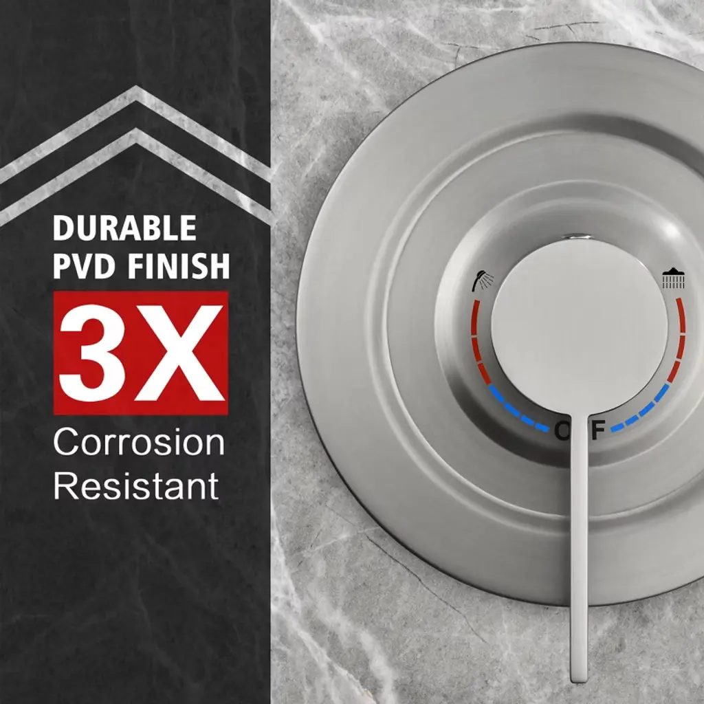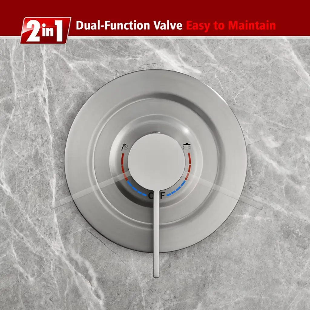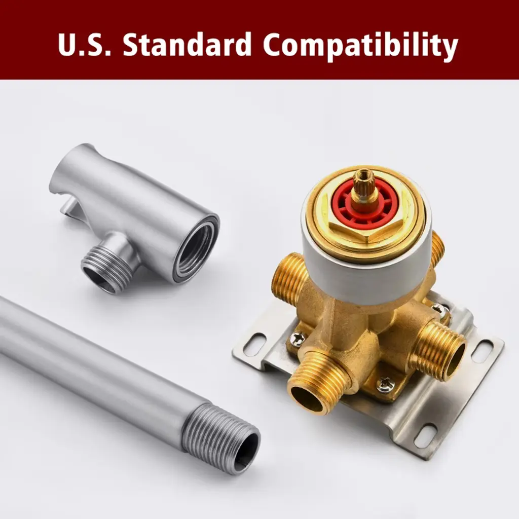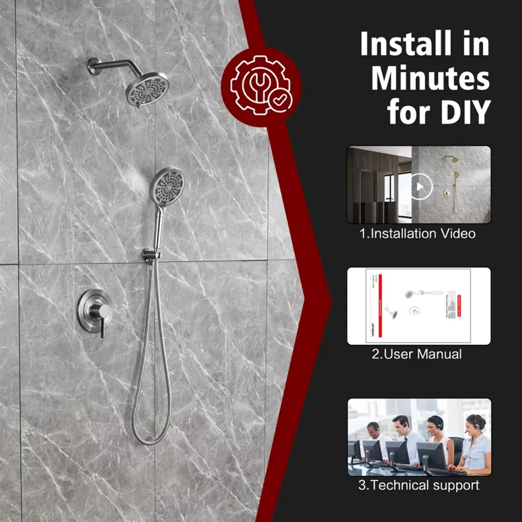 Experience a customizable showers with our modern shower system. Engineered for US homes, the filtered hand shower helps minimize chlorine, scale buildup, and odors using advanced anti-scale technology—ensuring consistent filter water flow and clog-resistant performance. Choose from 6 handheld spray modes or 5 rainfall settings, all controlled via an intuitive dual-function valve that simplifies water flow and temperature adjustments. Crafted with lead-free brass for lasting durability, this shower faucet withstands corrosion buildup, making it ideal for households looking for a reliable shower solution. The DIY-friendly design includes standard-compatible fittings for quick installation, while 8-second filter replacements guarantee low-maintenance operation. Complete with all accessories, this affordable shower kit transforms your bathroom into a spa retreat without costly renovations. Upgrade confidently with seamless US plumbing integration and industry-leading corrosion resistance. Model: S3243I-BN-TAProduct Name: Complete Shower System with Filter Hand ShowerMaterial: Brass+ABSFinish:Brushed Nickel SUMERAIN is a established name in the US plumbing industry which puts great emphasis on stylish and durable. Perfection does not always have to be expensive. SUMERAIN masterful products are high quality and inexpensive. Over three decades of manufacturing experience has provided us with the extensive market knowledge and the ability to offer new products at reasonable expense. The key to our success is intelligentization- we have rapidly expanded into exciting new products groups to be at the forefront of the market. We are dedicated to bringing you the latest designs utilising the most up-to-date technology. The new product design team benefit from a development system audited to ISO9001 standards, meaning each product is designed, sourced, evaluated and warehoused in a high standard. About this item specificities 1. Modern Style & Water Filtration Elevate your bathroom with this contemporary shower system. The filtered hand shower helps minimize chlorine and odors associated with scale buildup using anti-scale technology, for a more comfortable shower. and preventing clogging.2. Multi-Function Spray Options Enjoy 6 handheld and 5 rainfall spray settings - switch between massage, rain, and targeted flows via an intuitive dual-control valve. This adjustable shower system customizes patterns effortlessly, providing luxury-tier flexibility for personalized bathing.3. Easy DIY Setup & Maintenance Designed for simple shower installation, this complete shower faucet fits US standard plumbing without professional help. Replace shower filters in 8 seconds with filter element. DIY-friendly hardware enables hassle-free setup, saving time and renovation costs for quick bathroom upgrades.4. Durable Lead-Free Construction Built with solid brass shower fixtures, this corrosion-resistant body withstands high pressure, high temperatures and cold weather. Lead-free materials are used in construction while anti-scale nozzles prevent mineral buildup.5. Budget Complete Shower Kit Get premium features affordably. This complete shower kit includes all accessories for immediate bathroom upgrades. With universal US plumbing compatibility, it installs seamlessly into existing setups.