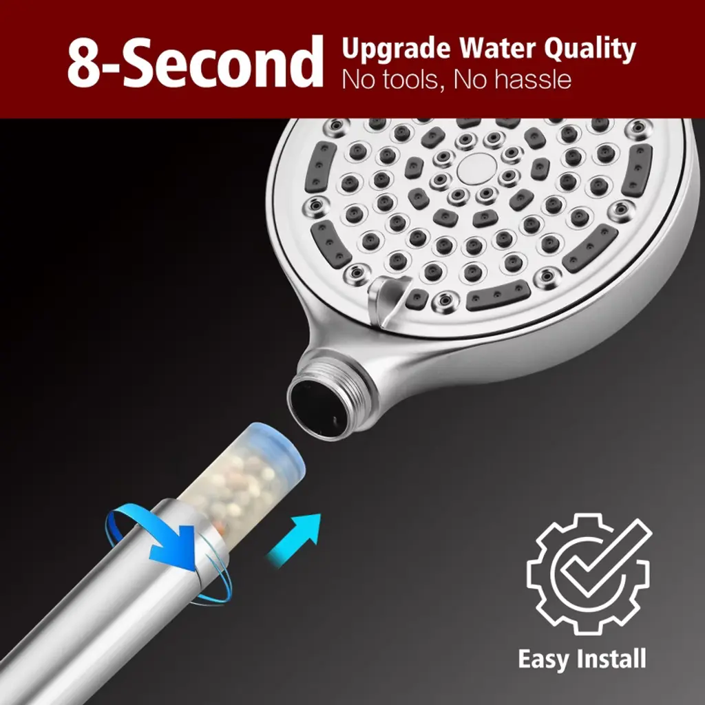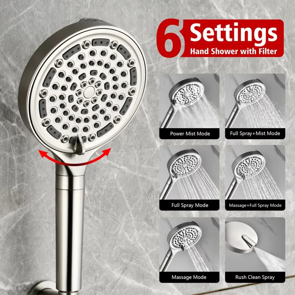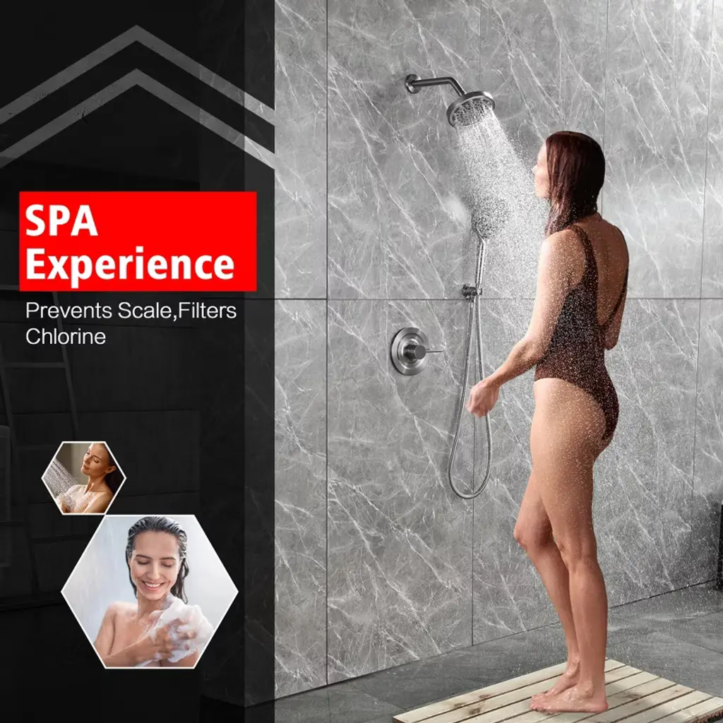 Sumerain Shower System With 6 Settings Filtered Handheld Shower Head For Hard Water Brushed Nickel