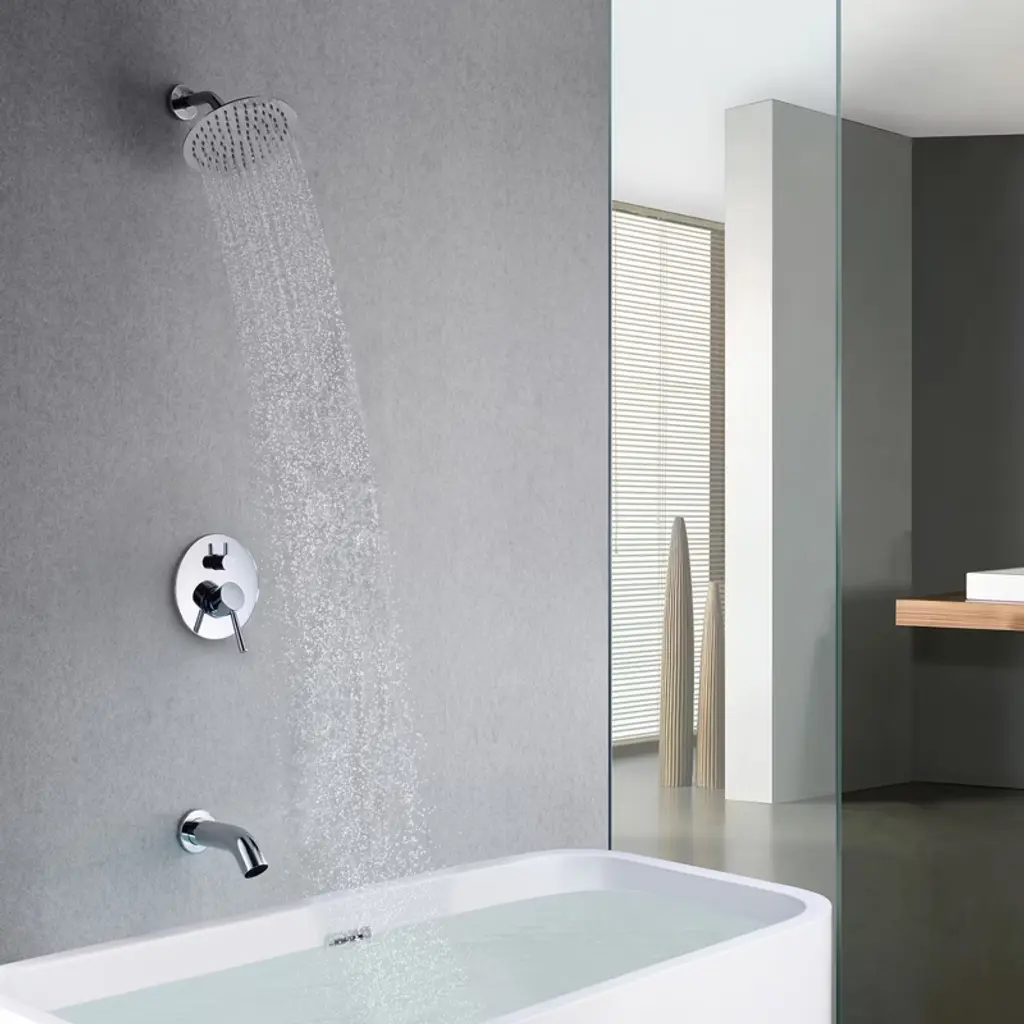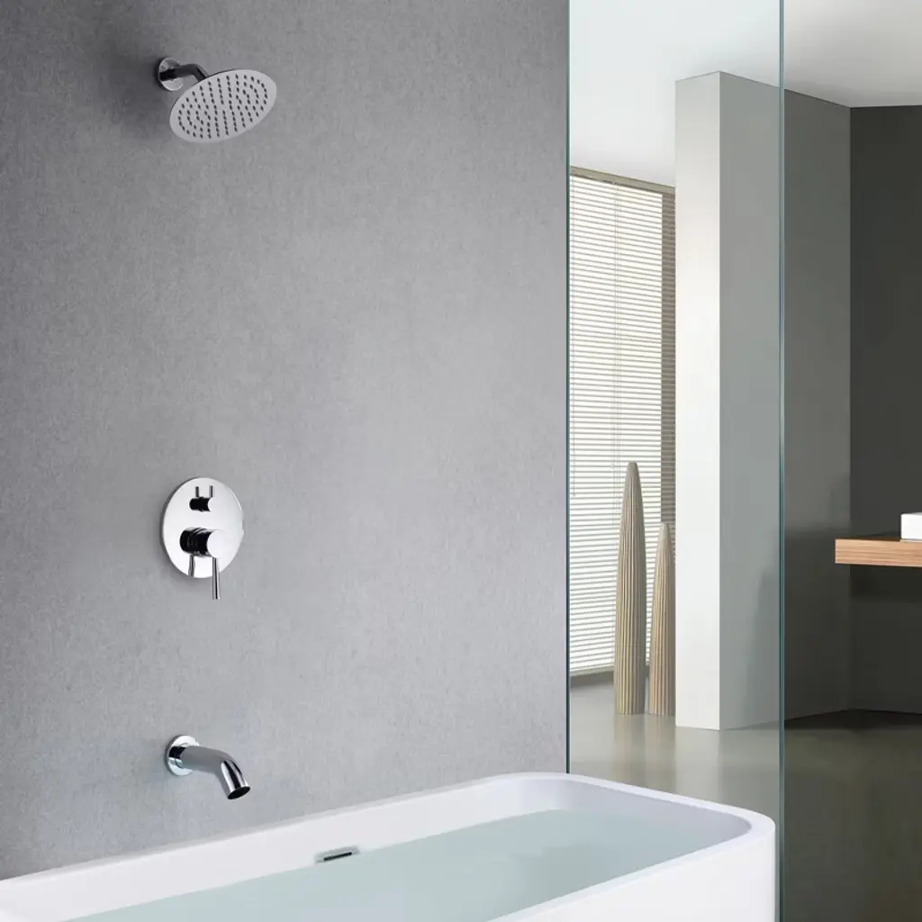 Brimming with classical flair and verve, the SUMERAIN shower set transforms any shower into the ultimate personal spa. The water temperature and volume are controlled through the dual-function valve and trim set, which incorporates a lever handle and a diverter knob. The SUMERAIN Shower Set with scratch and tarnish-resistant surfaces for a lifetime of beauty chrome, a long-lasting finish that will retain its classical for years to come. 1.8GPM 6.8L/MIN showerhead flow rate, product listed in the CEC modernized appliance efficiency database system and ECPA DOE list,also compliant with EPA WaterSense specification for showerheads(version 1.1,July 26,2018). Showerhead, show arm and spout has ICC-ES PMG certification and is compliant with standard: ASME A112.18.1/CSA B125.1-2018, plumbing supply fittings(the same standard as cUPC certification). Model: S3230CI-TAProduct Name: Tub Shower FaucetMaterial: Brass, Stainless SteelFinish: Chrome Welcome to SUMERAIN! We take pride in our expertise and commitment to producing top-of-the-line faucets, our team of skilled designers and engineers work tirelessly to create innovative and visually appealing faucets that seamlessly blend form and function. From sleek and modern designs to classic and timeless styles, we offer a wide range of options to suit various preferences and interior design themes. We believe that every customer deserves a faucet that not only performs flawlessly but also adds a touch of elegance to their space. About this item specificities 1. High flow(4.83GPM@60PSI) cartridge ensures this tub faucet can fill up your bath in a minutes. American patent high flow waterfall tub spout provides elegance and functionality for your bath.2. The standard NPT 1/2" threads designed for use with standard U.S. and Canada plumbing connections. Concealed box designed for easy installation, maintenance and remodeling. Especially suitable for DIY users.3. Single-handle design easily adjust the water temperature and flow with the sleek operations. 5 Years quality warranty for cartridge.4. Ultra-thin 8 inches SUS304 stainless steel shower head, ensuring water saving and providing aesthetic appeal.5. Shower tub faucets sets complete with shower head, tub spout and rough-in valve for your easy installation and saving costs!