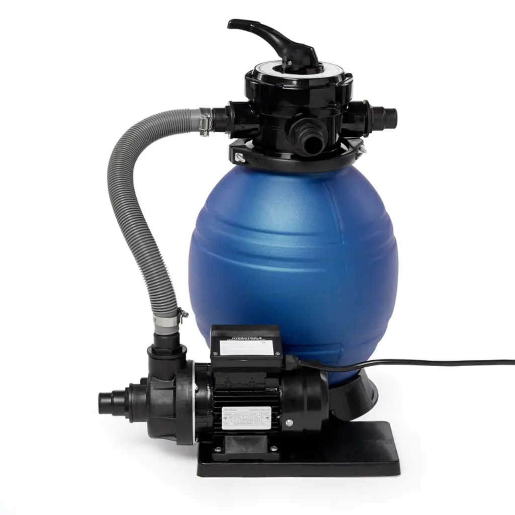 Take the toil and frustration of pool cleaning out of your routine this summer. Spend more time enjoying your pool and less time cleaning it with the Hydrotools Sand Filter Combo by Swimline. This top-quality pool filter system provides you with an easier and better swimming pool maintenance experience. This sand filter is meticulously designed to efficiently and consistently filter your pool while optimally conserving energy and complying with new DOE compliance and regulations. The filter is constructed to promote the cleanest water quality while providing a quick and simple user experience. Carefully molded, the pool filter tank which can hold up to 60 pounds of sand is double-reinforced to ensure a reliable, air-tight compartment for filtration action. Sand can withstand approximately 5 years of use before replacement depending on water chemistry and proper backwashing frequency. Pool filter sand is not included. The pumps housed by this sand filter combo system run on low noise levels, creating a fantastic user experience. Components include a tank, pump, filter base, multi-port valve, 3-prong plug, power cord, and more. Works with Hydrotools products but also as plug-and-play replacements for other brand pool equipment. The Hydrotools' goal is to help you achieve more quality time on the water with friends and family. So, spend less time worrying about maintaining your pool, and more time enjoying it with this Swimline Hydrotools Sand Filter Combo.
