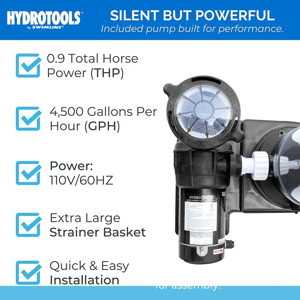 Upgrade your pool maintenance with the Swimline Sure-Flo 70 Square Feet Cartridge Filter System, the ultimate solution for sparkling, clean water. Engineered for efficiency and performance, this system is perfect for pools up to 19,000 gallons. The cartridge pool filter features a powerful 0.9 THP pump capable of circulating an impressive 4,500 gallons per hour, ensuring your pool stays clean and inviting throughout the season. The Sure-Flo filtration system offers a 70 square foot filtration area, delivering exceptional debris capture and water clarity. Designed with a single-cell filter construction, it simplifies maintenance, just rinse and wash with ease. The pump is DOE energy-efficient compliant, minimizing energy consumption while operating with lower noise levels for a more peaceful poolside experience. Durability meets functionality with the heavy-duty tank and components, all molded from UV-resistant materials to withstand harsh outdoor conditions. The tank top cover includes a tightening ring and latch locking system for an airtight seal while providing quick access for filter changes. Added features like a built-in pressure gauge and release valve ensure optimal performance and user-friendly operation. This all-in-one system includes everything you need: a robust filter tank, cartridge elements, mounting base, energy-efficient pump, and two 1.5-inch connection hoses with adapters. Designed to combine superior filtration with energy-saving technology, the Swimline Sure-Flo system is your trusted partner for a pristine pool. Equipped with a 0.9 THP pump that circulates up to 4,500 gallons per hour, this system efficiently cleans pools holding up to 19,000 gallons, ensuring crystal-clear water Single-cell filter design allows for quick rinsing and washing, while the tightening ring and latch locking system make filter changes fast and trouble-free Redesigned pump complies with DOE energy efficiency standards, minimizing energy usage and delivering quieter performance for a more enjoyable poolside environment Constructed with UV-resistant materials, the filter tank and components are engineered to withstand outdoor conditions, providing long-lasting reliability Includes a filter tank, cartridge elements, mounting base, pump, two 1.5-inch connection hoses, and adapters, offering everything you need for seamless pool maintenance Color: Black/Grey Dimensions (L x W x H): 36 x 21 x 15.5 inches Weight: 50 pounds Manufacturer warranty: 1-year warranty