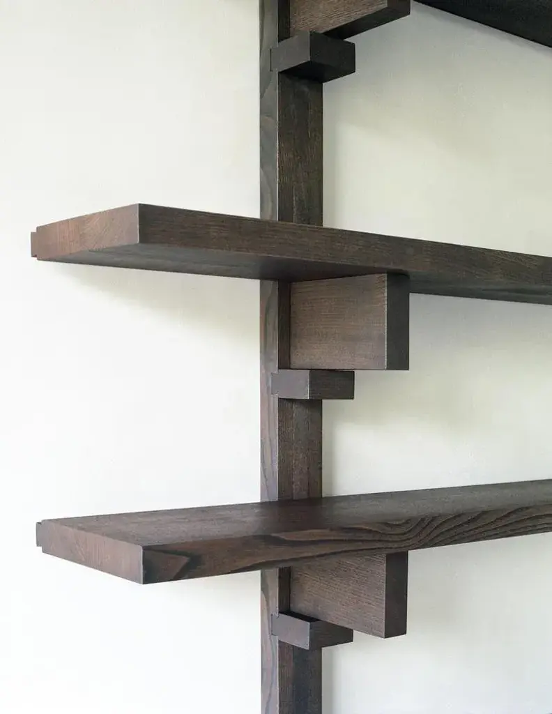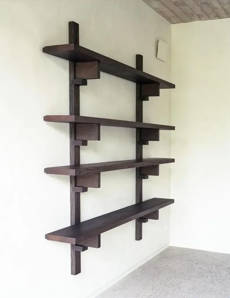 System p4 shelves by part studio atelier dimensions: h148 x w200 x d26 cm materials: wood chestnut also available in sonian wood beech. Images by: valentina stellino system p4 as well as table dominique, both celebrate the age-old craft of woodworking and more specifically the love of the dovetail joint. The dovetail joint gives the furniture its characteristic aesthetics and, thanks to the natural oil finish and the glueless joints, the entire piece can be completely disassembled into its essential chain elements or touched up and restored to its most beautiful state. We further do credit to the natural solid wood by keeping it local. In this way, the furniture is able to withstand the ravages of time, both through its archetypal design language and the cradle-to-cradle principle. Studio part we look at the design, not as a single occupation, but as a woven whole in a world of plenty. Believing more in a universal connection than just the duality of our universe. This offers gigantic freedom in design but also a huge consequential responsibility. We are very aware that every object, drawing or even concept is interlinked and has an effect on its surrounding environment, be it physical or emotional. Knowing this, we do not take our job lightly. Atelier part in combining production alongside our design studio we obtain a birds-eye view over the desired result. We merge the experience of our designers and craftsmen in the fields of interior, exterior, event, product and furniture design with the techniques and skills of our partners in leatherwork, ceramics, lighting design, graphic design and public arts. We do not discriminate materials, nor technologies and treat every project with an equal perfectionistic, creative and enthusiastic drive as the next.