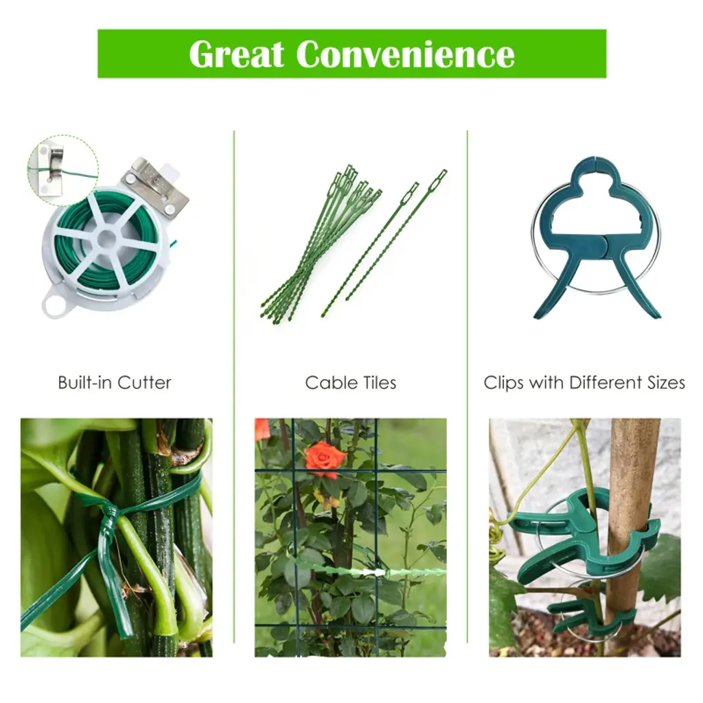 Provide Ideal Growing Support for Your Climbing Plants! Our garden cucumber trellis set includes 8 trellises for freely combinations, whether you want an A-shaped climbing frame or a rectangular-shaped climbing frame, it is easy to assemble by rotating spring connectors and buckles. Besides, the wires are made of premium steel material that is rustproof and weather-resistant, allowing for long-term outdoor uses. The plant growing support is ideal for climbing plants, especially for heavier fruits and vegetables to grow in the desired direction. In addition, the stable A-shaped frame allows you to plant a row on both sides and allows plants to obtain even sunshine and rain. Other than that, it is also equipped with multiple practical accessories to facilitate planting work: a garden twist tie with a built-in cutter, 12 cable ties, 9 big clips, and 9 small clips to fix plants and trellises, and there exist ground stakes for adding more stability and safety. Moreover, it provides large climbing space while saving floor area. FeaturesGet sufficient sunlight, promote air circulation, and grow healthilyConstructed of rust-resistance steel wires, long-lasting for long-lasting outdoor usesFeatures 2 installation ways: A-shaped and rectangular-shaped climbing frameEasy to install and change shape by rotating spring connectors and bucklesIdeal for planting fruits, vegetables, flowers, Virginia Creeper, and moreComes with a garden twist tie, cable ties, and flexible clips to fix plants and trellisesThe ground stakes help fix trellises and ensure stabilityHelp save places for planting and make plants grow in the desired directionThe height and width of the A-shaped climbing frame can be adjusted Equipped with straightforward instructions and assembly video for quick setupSpecification: Color: Green Material: Steel, PP Overall Dimension: 50.5" x 34"(L x W)/ the Size of 2 Trellises Unfolding 128 cm x 86 cm(L x W)/ the Size of 2 Trellises Unfolding Garden Twist Tie Length: 65.5 ft/ 2000 cm Net Weight: 13 lbs/6 kg Package Included: 2 x Cucumber Trellis 9 x Big Clip 9 x Small Clip 16 x Ground Stake 8 x Spiral Connector 12 x Cable Tie 1 x Garden Twist Tie 1 x Instruction