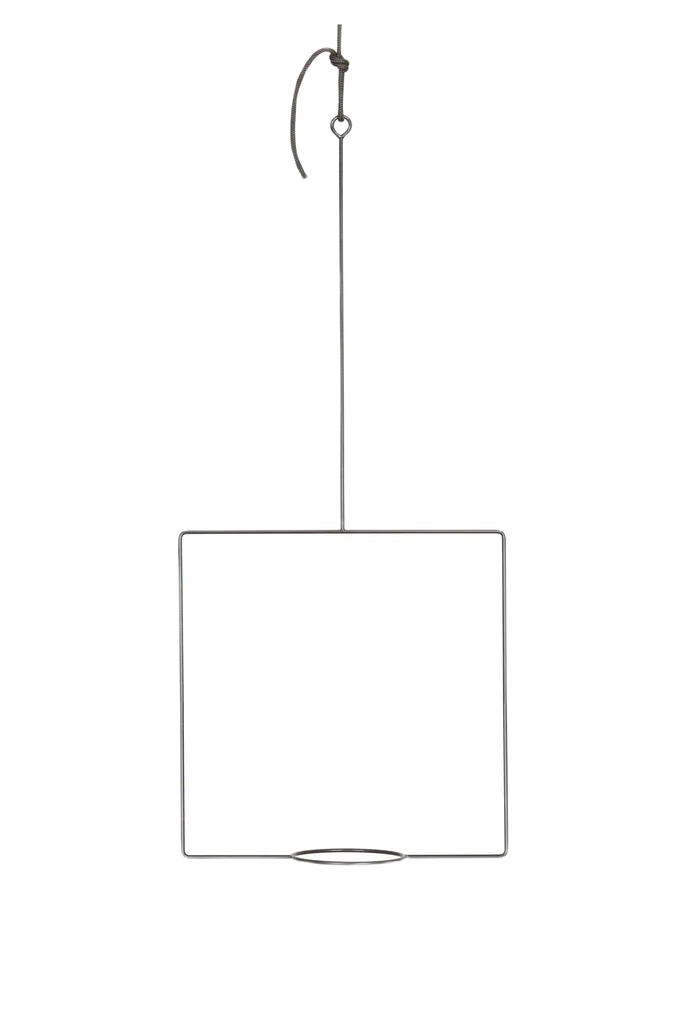 Theo is an exoskeleton for domestic flora. The Theo series comes in three shapes: triangle, square, and circle. The hangers are designed to hold differently sized potted plants. The simple geometric shapes merge different functions. Theo frames the plants, protects them, and gives them support while growing This triangle frame can fit pots from measuring 18 - 22 centimeters in diameter, placing them up in the air. Two stoppers made from cork are included. They are plugged into the hole in the bottom, keeping the roots well supplied with water. It is equipped with a 150-centimeter long rope, allowing for dynamic height-adjustment.