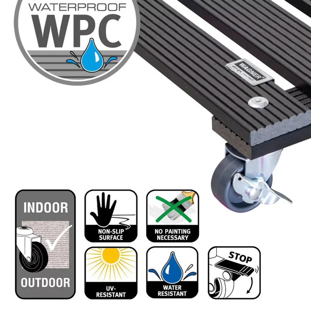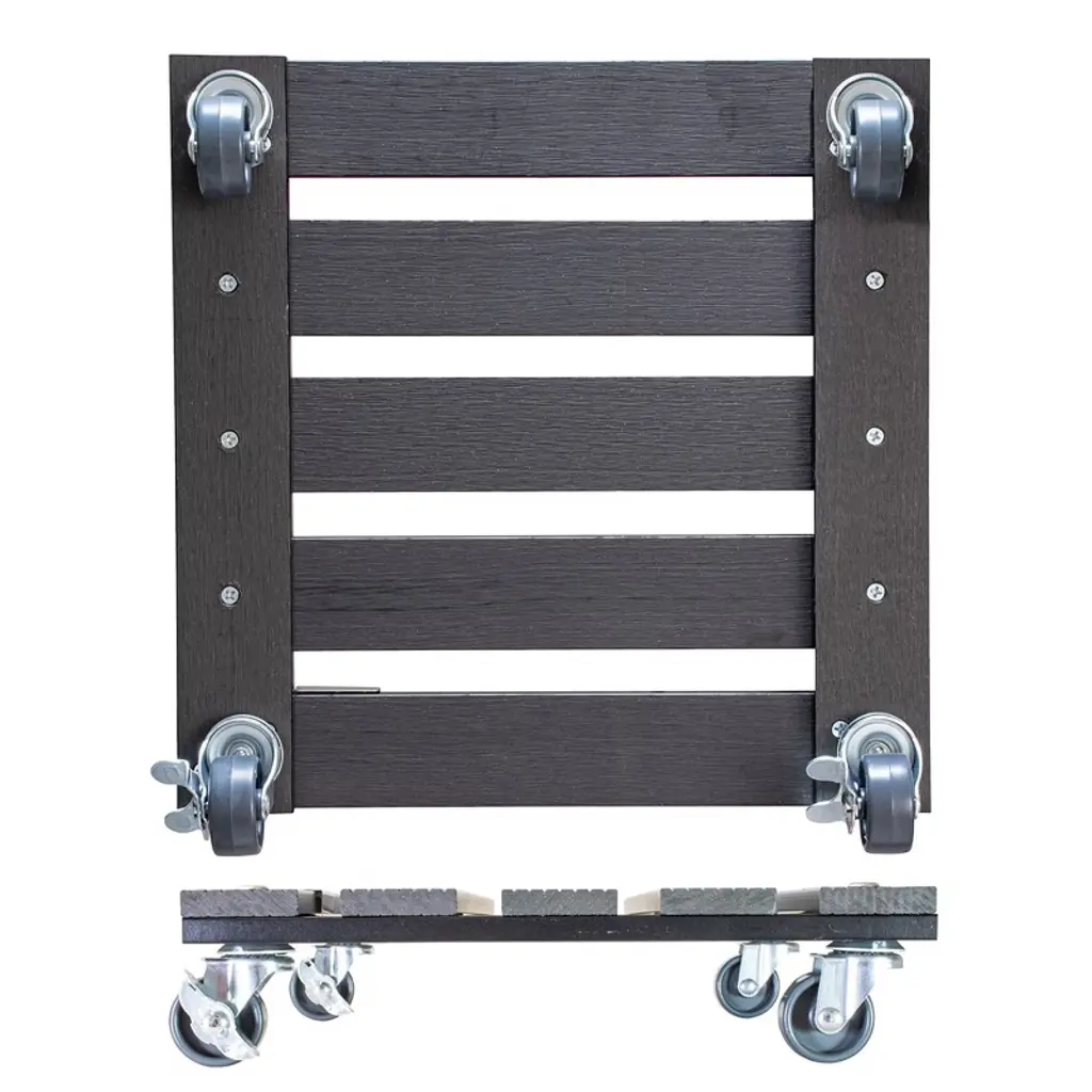 The Wagner Waterproof Square Plant Caddy is not just visually appealing but also exceptionally durable. Made from Wood Plastic Composite, it is designed to be resistant to both water and UV rays, making it ideal for indoor or outdoor use. This caddy comes with a 25-year warranty and is equipped with heavy-duty casters that include brakes. It can bear a weight of up to 176 lbs. and features a square platform that measures 11.4 inches on each side. Wagner, located near the Black Forest in Southern Germany, is celebrated for its superior quality. With over 40 years of experience in design and manufacturing, Wagner guarantees that all its products are subjected to rigorous safety and durability tests.