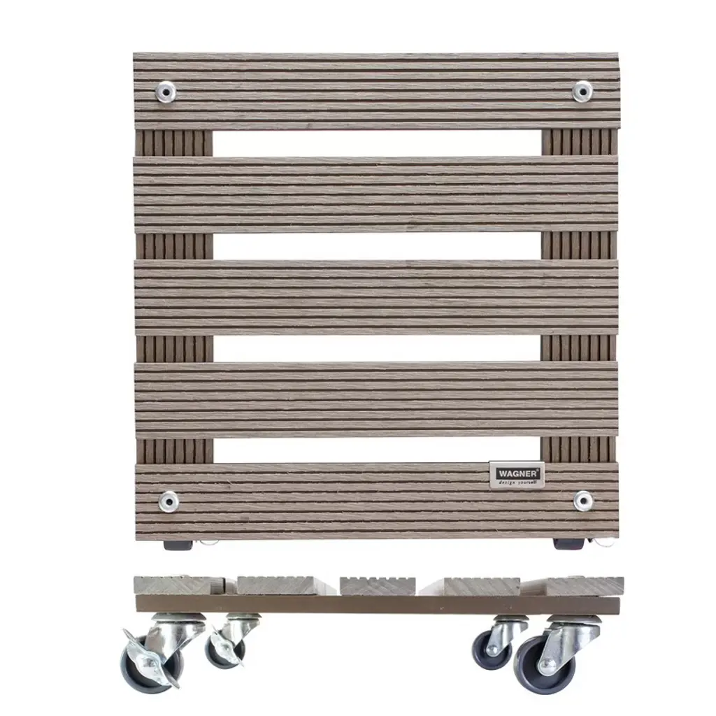 The Wagner Waterproof Square Plant Caddy is not just visually appealing but also exceptionally durable. Made from Wood Plastic Composite, it is designed to be resistant to both water and UV rays, making it ideal for indoor or outdoor use. This caddy comes with a 25-year warranty and is equipped with heavy-duty casters that include brakes. It can bear a weight of up to 176 lbs. and features a square platform that measures 11.4 inches on each side. Wagner, located near the Black Forest in Southern Germany, is celebrated for its superior quality. With over 40 years of experience in design and manufacturing, Wagner guarantees that all its products are subjected to rigorous safety and durability tests.