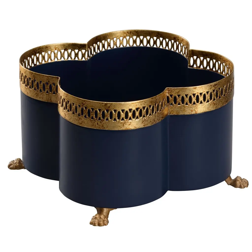 Enhance the look of your orchids or other floral arrangements with our Tracery Cachepot. This elegant quatrefoil planter with antique gold filigree trim and claw feet complements any traditional design style. Spectacular as a stand-alone or paired with our porcelain flower stems, this cachepot is perfect for a table in your living area or dining room. Designed by Lisa Kahn.