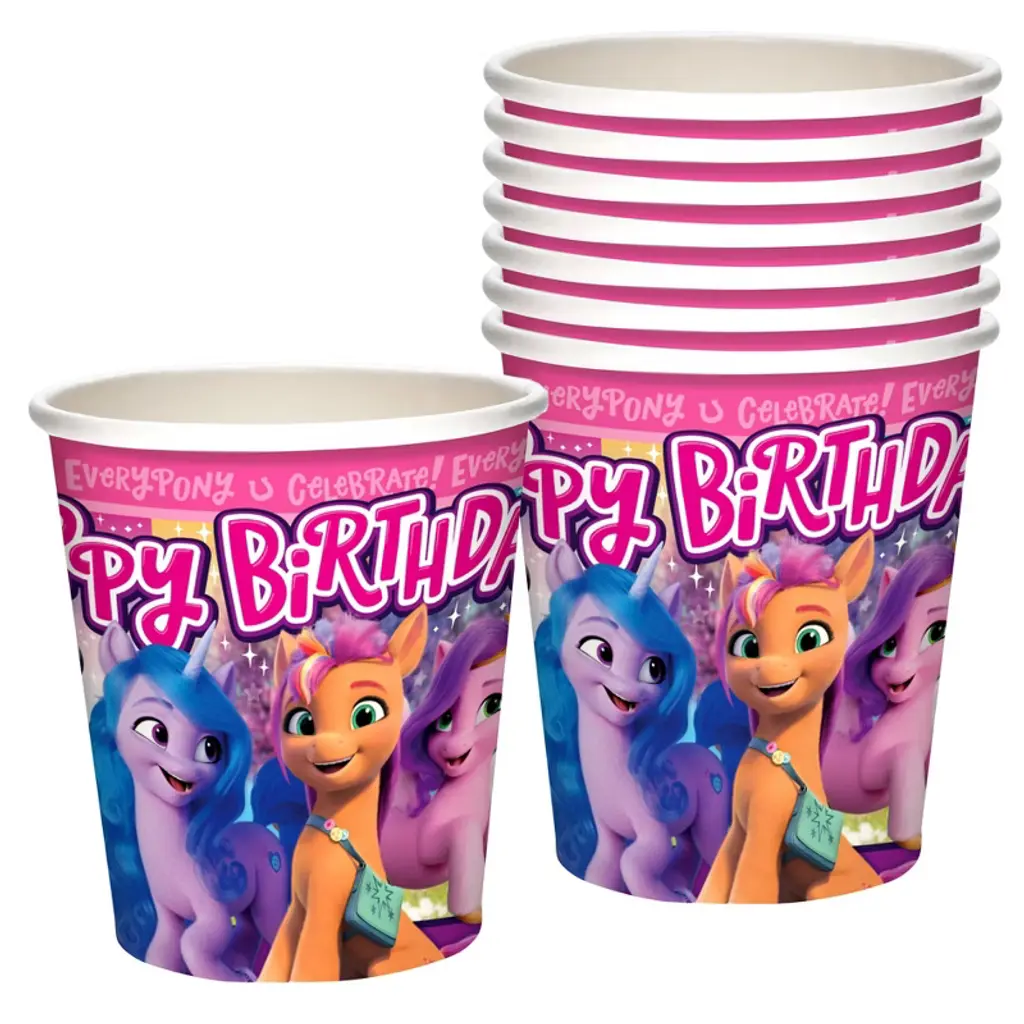Create a magical world for your little one's party with our My Little Pony latex balloons! Featuring the Mane 5, these adorable and brightly colored balloons are sure to set the mood for a My Little Pony party theme. Made from high-quality latex, they are durable and long-lasting, ensuring that they will stay inflated through the entire celebration. Check out our store for more authentic My Little Pony birthday party supplies like cake toppers, banners, backdrops, and more! This My Little Pony balloon kit features: (12) 12in tall latex balloons 11 yards of ribbon