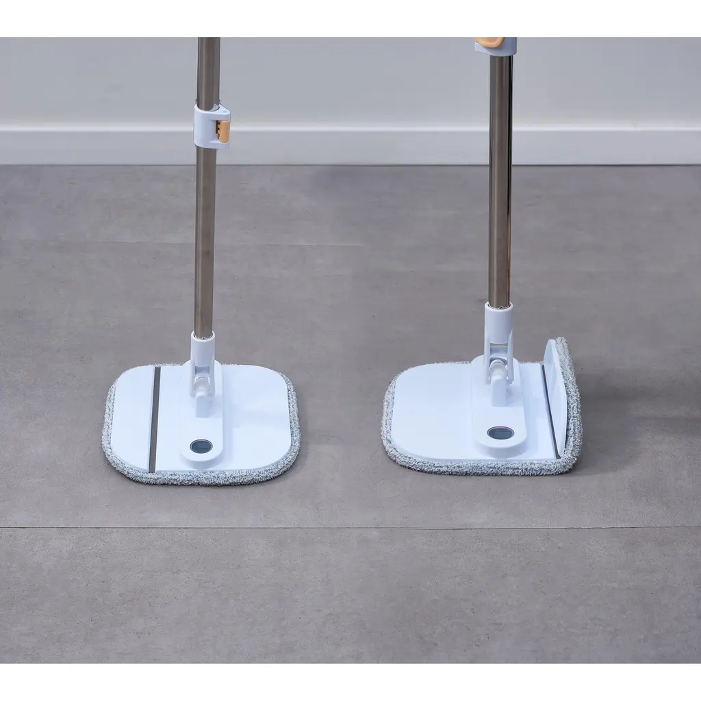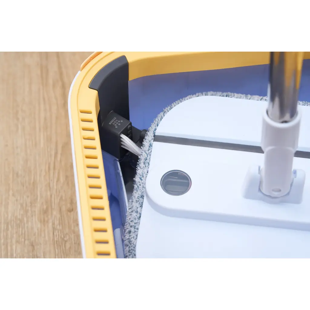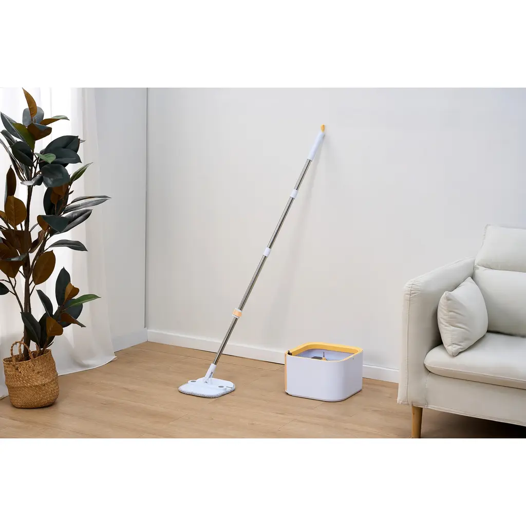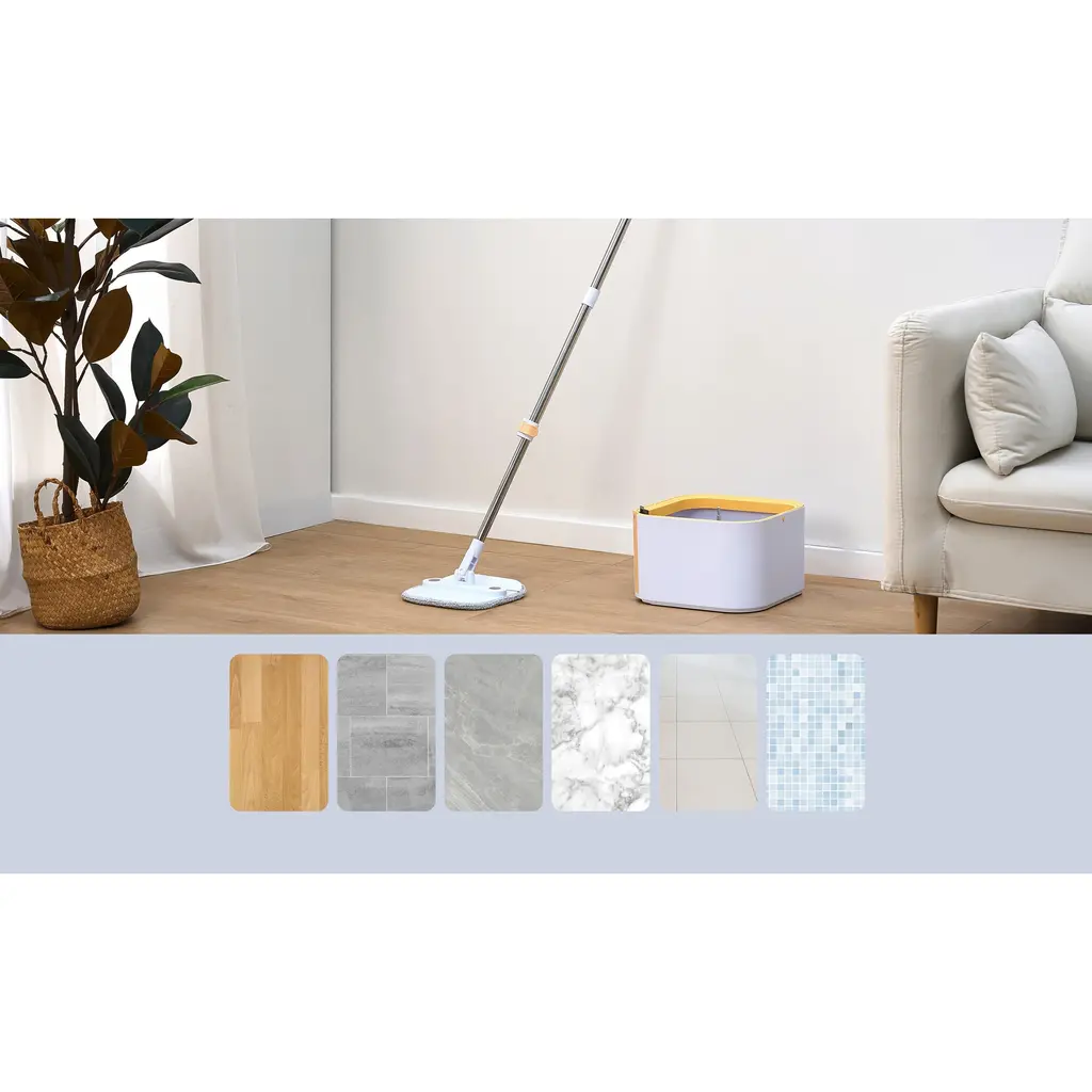 True & Tidy’s TrueClean Duo Bucket & Spin Mop System offers efficient, hygienic cleaning with separate compartments for clean and dirty water. Its machine-washable mop pads, adjustable handle, and removable inner bucket make cleaning simple and ergonomic. The folding mop head cleans baseboards, while a new side brush on the built-in scrubber handles stubborn dirt—perfect for any home.Features:
