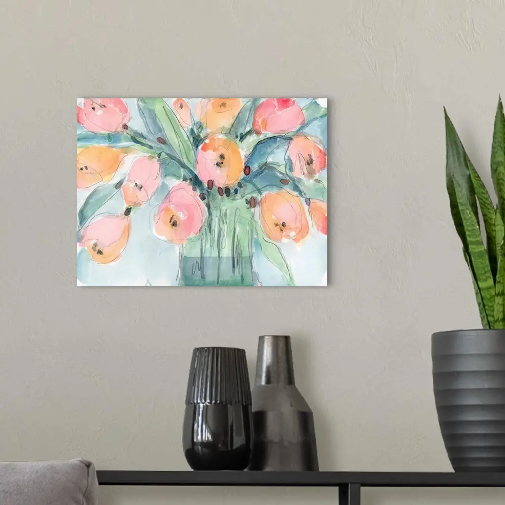 Tulip Bouquet IV wall art for home and office decor. Discover canvas art prints, photos, mural, big canvas art and framed wall art in GreatBigCanvas.com's varied collections.