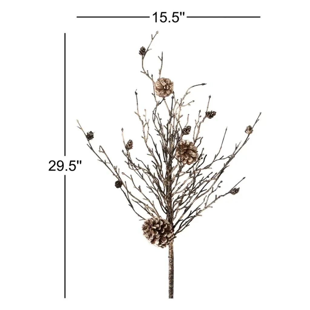 Naturally occurring in forests and fields, branches such as this, add to the realistic essence of any arrangement. Keeping the look of your designs authentic will be a snap when you insert these twig pinecone branches into your masterpiece option for any space.