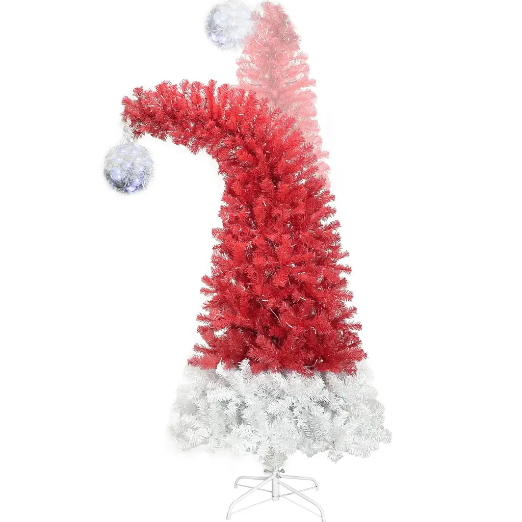Unique 6Ft Santa Hat-Inspired Christmas Tree With 300 Clear Led Lights And 1250 Branch Tips - 6 Foot - Red