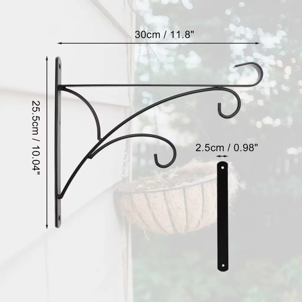 Features: 1. Crafted from quality iron material for long-lasting use. And the paint surface making it not easy to rust and corrode. This plant hanger is built to last, ensuring your plants are safe and secure. 2. Featuring a minimalist and elegant design, the plant hanger complements any decor style, from bohemian to modern, making it a stylish addition to your indoor or outdoor space. 3. With a simple yet sturdy design, this plant hanger comes hanging hooks and screws that allows you to effortlessly hang it anywhere in your home or garden. 4. Suitable for a variety of pot sizes and shapes, this plant hanger is suitable for showcasing your favorite plants, flowers, herbs, or lanterns, adding a touch of greenery to any space. 5. Surprise your friends or family with this practical and chic plant hanger, an ideal gift for plant lovers or anyone looking to beautify their living space effortlessly. Specification: Color: Black; Material: Iron; Length: 30cm / 11.8"; Width: 25.5cm / 10.04"; Height: 2.5cm / 0.98"; Package List: 2 Pcs Plant Hanger, 4 Pcs Screws, 4 Pcs Expansion Bolts.
