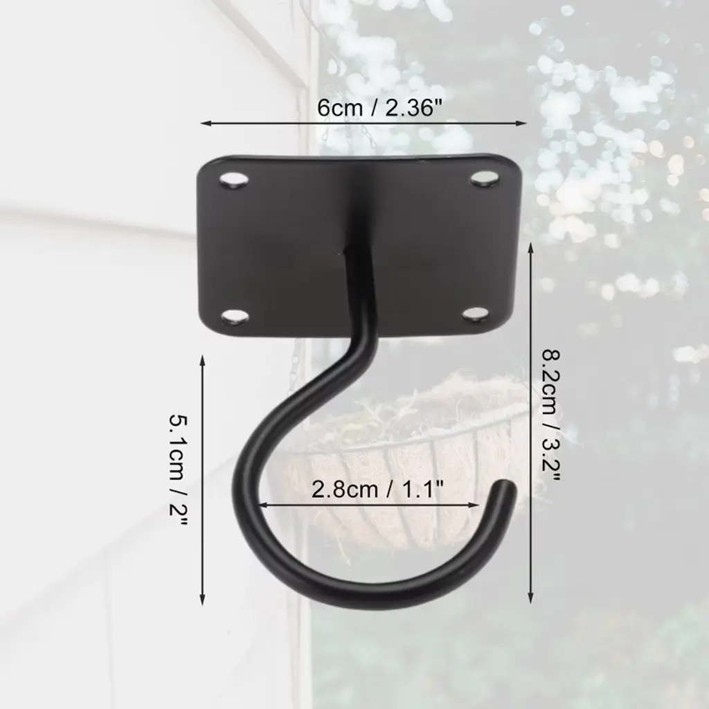 Features: 1. Crafted from quality iron material for long-lasting use. And the paint surface making it not easy to rust and corrode. This plant hanger is built to last, ensuring your plants are safe and secure. 2. Featuring a minimalist and elegant design, the plant hanger complements any decor style, from bohemian to modern, making it a stylish addition to your indoor or outdoor space. 3. With a simple yet sturdy design, this plant hanger comes hanging hooks and screws that allows you to effortlessly hang it anywhere in your home or garden. 4. Suitable for a variety of pot sizes and shapes, this plant hanger is suitable for showcasing your favorite plants, flowers, herbs, or lanterns, adding a touch of greenery to any space. 5. Surprise your friends or family with this practical and chic plant hanger, an ideal gift for plant lovers or anyone looking to beautify their living space effortlessly. Specification: Color: Black; Material: Iron; Length: 8.2cm / 3.2", Width: 6cm / 2.36", Hook Width: 5.1cm / 2", Hook Diameter: 2.8cm / 1.1"; Package List: 2 Pcs Plant Hanger, 4 Pcs Screws, 4 Pcs Expansion Bolts.