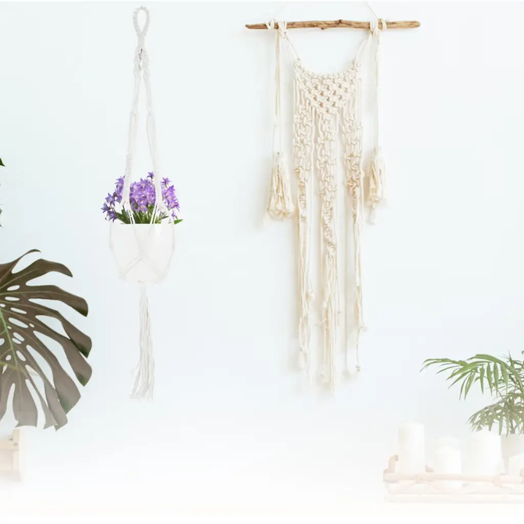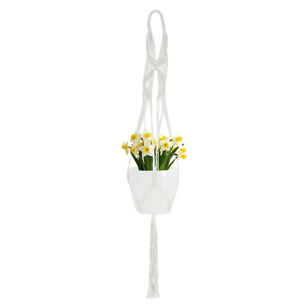 Elevate your space with this intricately crafted macrame plant hanger, adding a touch of bohemian charm to your home. Each hanger is meticulously handcrafted to bring a unique and artistic flair to your indoor or outdoor decor.Create a botanical oasis with this macrame plant hanger that complements various planters and pots. Its adjustable design allows you to showcase a variety of plant sizes and shapes, enhancing the visual appeal of your living space.Constructed with premium materials, this macrame plant hanger ensures durability and stability for hanging your favorite plants. The sturdy design provides reliable support for your plant while adding a stylish element to your room.Hanging your plants is hassle-free with the easy installation of this macrame plant hanger. Simply hang it from a hook, ceiling, or wall to instantly enhance your space. Additionally, the low-maintenance nature of the hanger makes caring for your plants effortless.Add a bohemian touch to your home with this macrame plant hanger that effortlessly blends with any decor style. Whether used indoors or outdoors, this hanger creates a cozy and inviting atmosphere, making it a great addition to your living space.