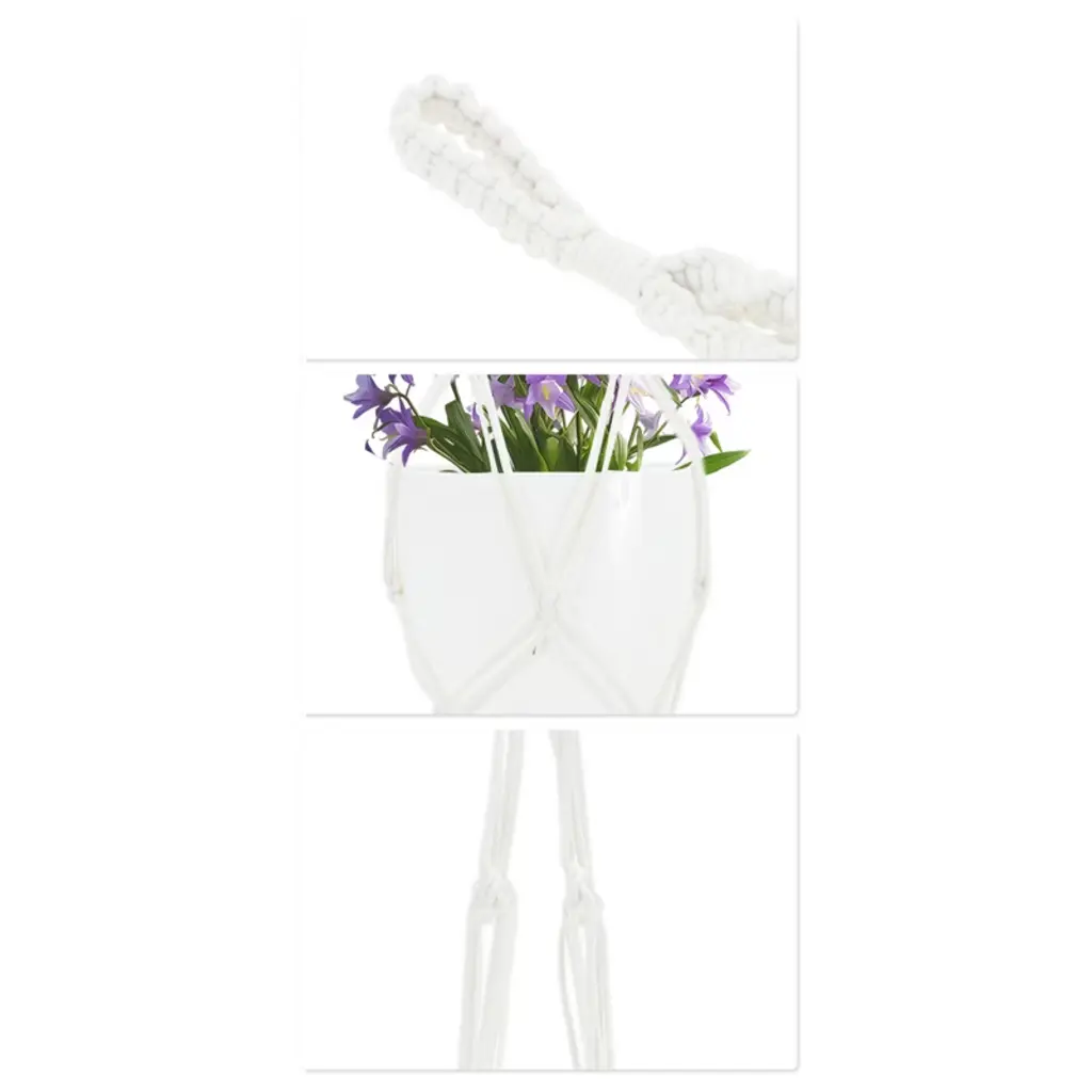 Unique Bargains Woven Cotton Indoor Outdoor Decorative Macrame Plant Hanger Cotton Core Flower Flat Flower Beige