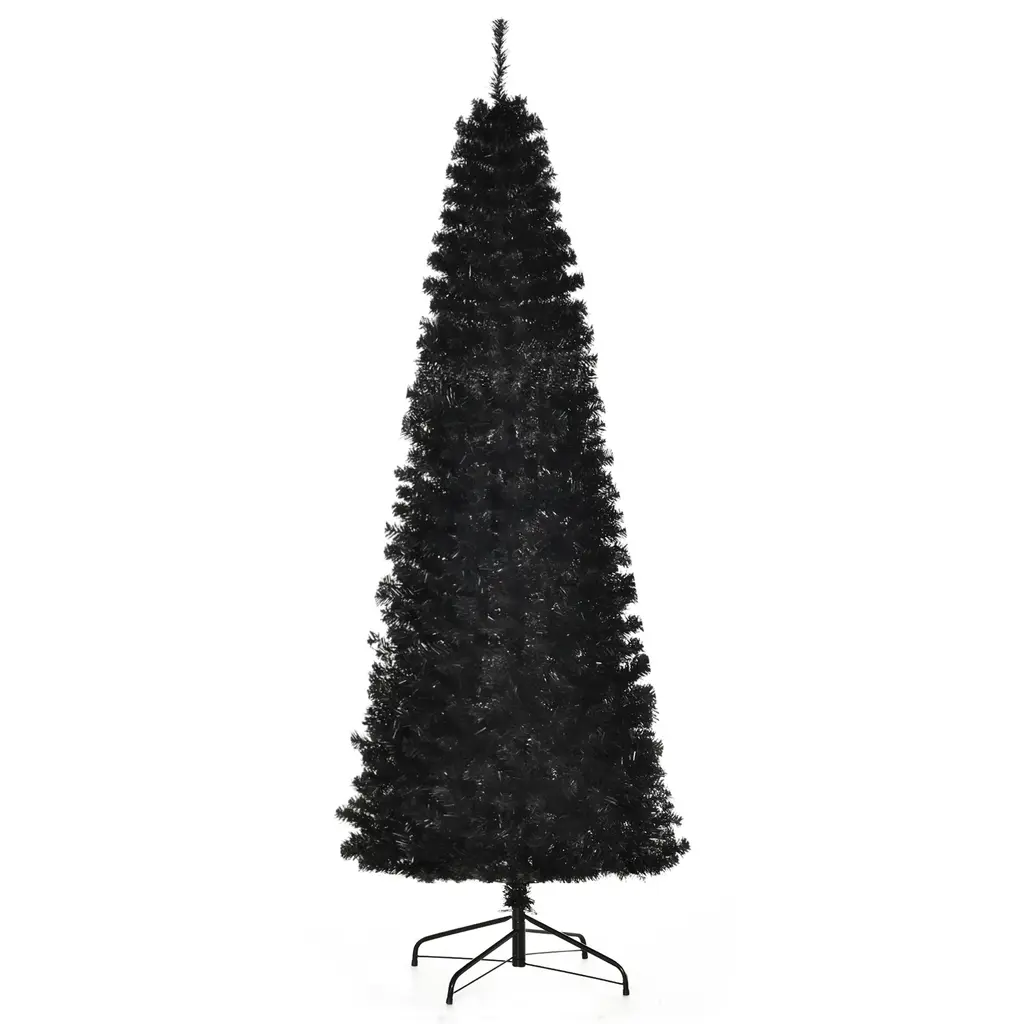 Unlit 6Ft Or 7Ft Slim Pencil Artificial Christmas Tree With 618 / 818 Branch Tips, Flame Retardant For Safe Holiday Display - 7 Foot - Black