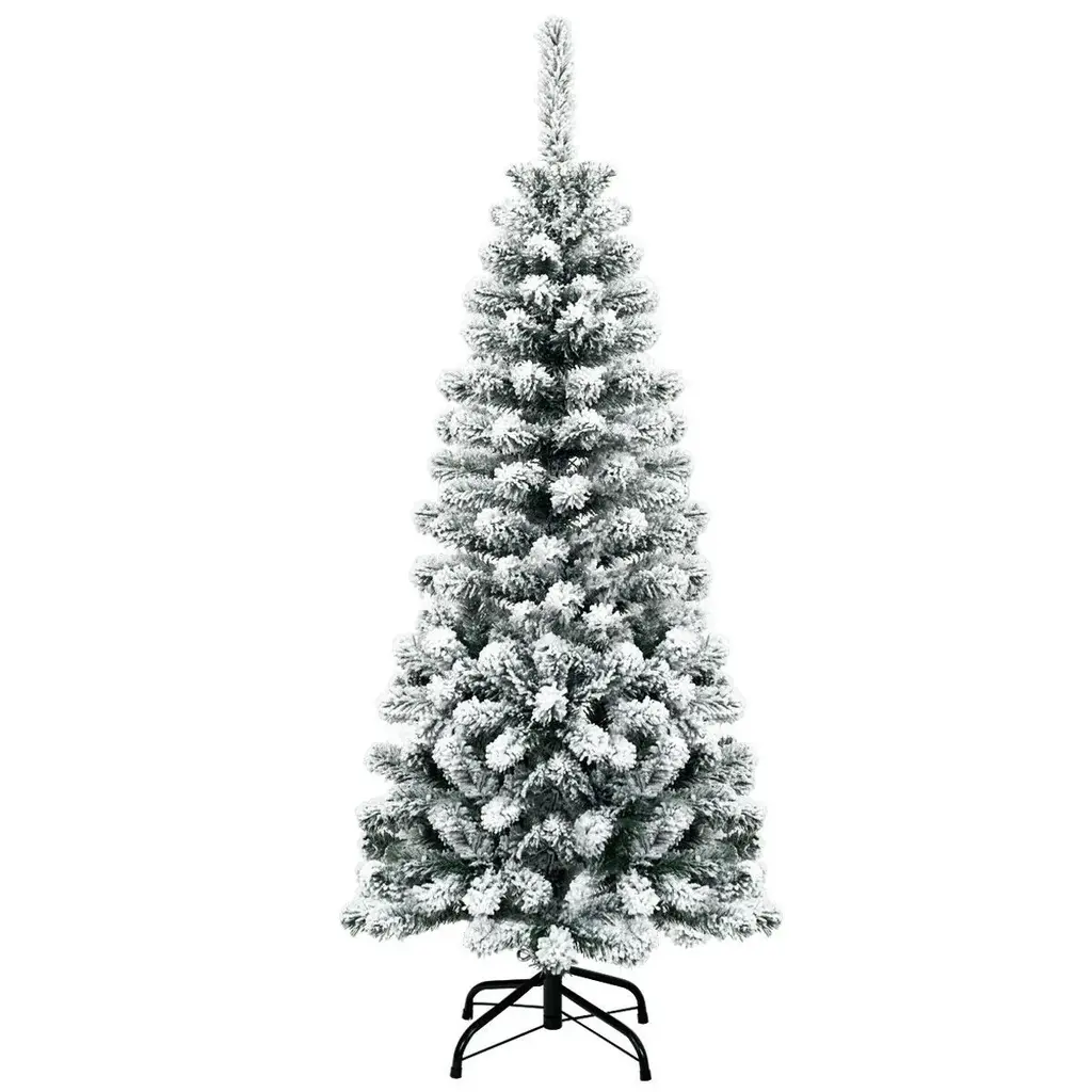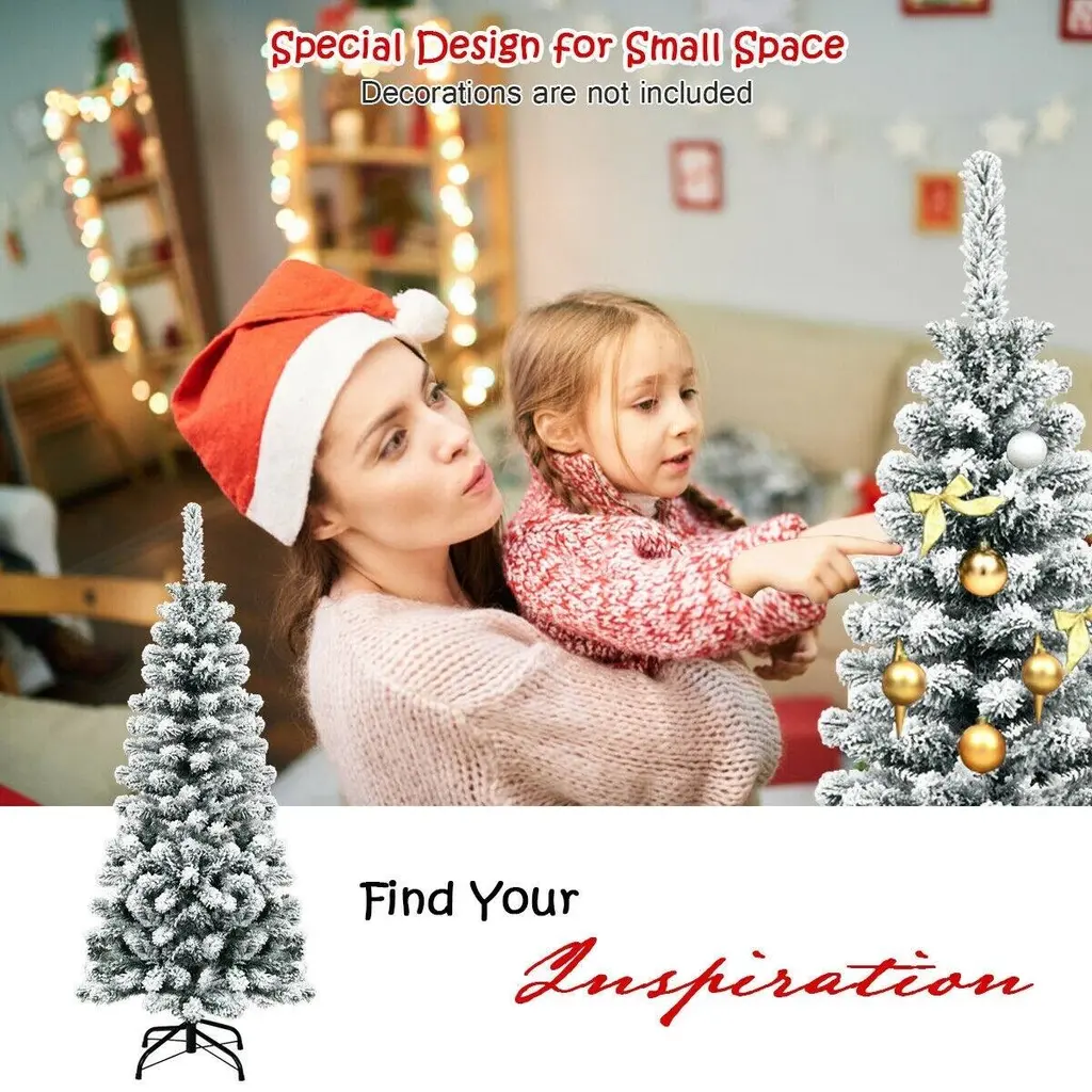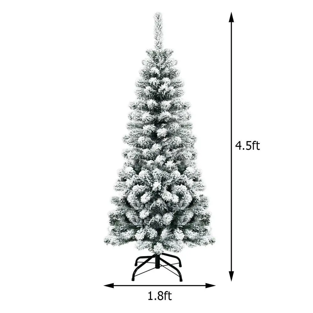 Unlit Hinged Snow Flocked Artificial Pencil Christmas Tree With 242 Branch- 4.5 Ft. - 1.8' X 1.8' X 4.5' - White