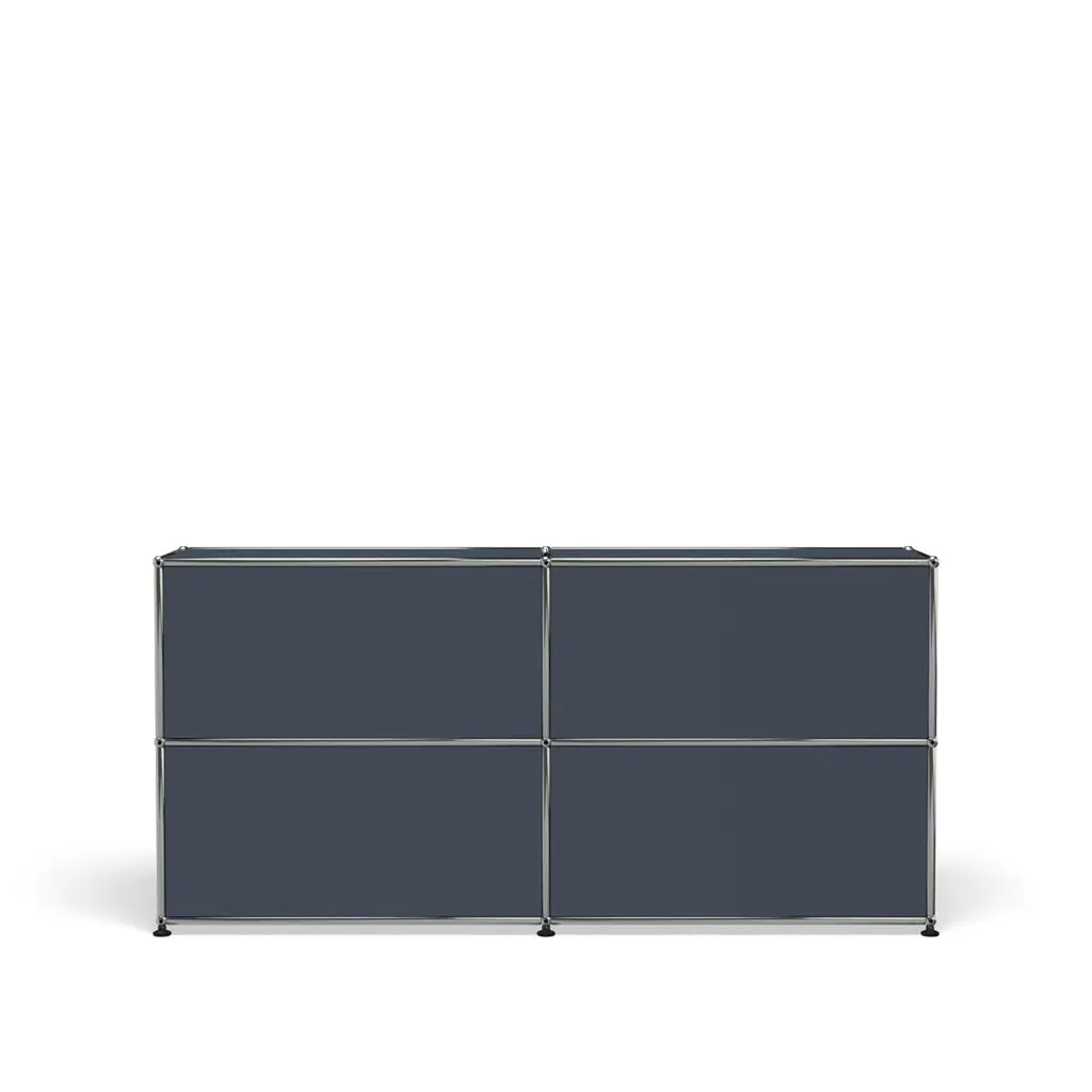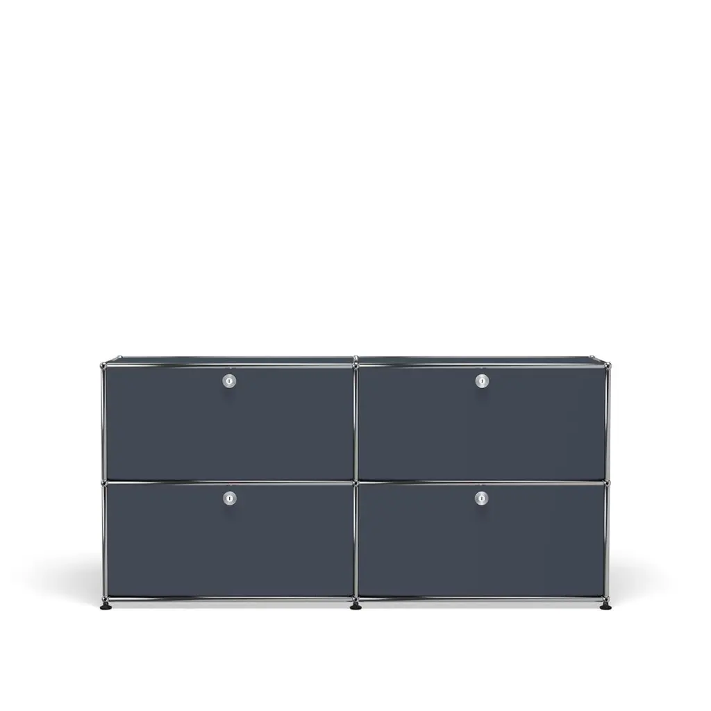 Offered by M2L. With four drop down doors. Designed by Swiss architect Fritz Haller and Paul Schaerer in 1963. Made from powdercoated steel and chrome-plated steel tubes, the USM Haller system is built to last for generations and adapt as your needs change. Proudly in production for over fifty years, it remains just as timelessly stylish, trailblazing, and unique as it was the day it was first created. It’s an icon of modernist design and art – it’s been a part of the Museum of Modern Art’s permanent collection in New York, since 2001. Made in Switzerland.Dimensions: 60" W, 15" D, 29" H.