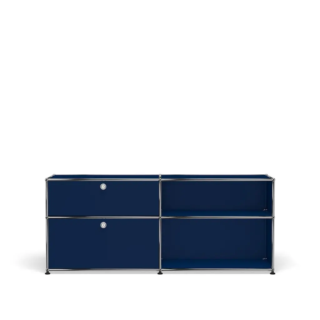 Offered by M2L.With one drop down door and one extension door with filing. Designed by Swiss architect Fritz Haller and Paul Schaerer in 1963. Made from powder coated steel and chrome-plated steel tubes, the USM Haller system is built to last for generations and adapt as your needs change. Proudly in production for over fifty years, it remains just as timelessly stylish, trailblazing, and unique as it was the day it was first created. It’s an icon of modernist design and art – it’s been a part of the Museum of Modern Art’s permanent collection in New York since 2001. Made in Switzerland.Dimensions: 60" W, 15" D, 26" H.