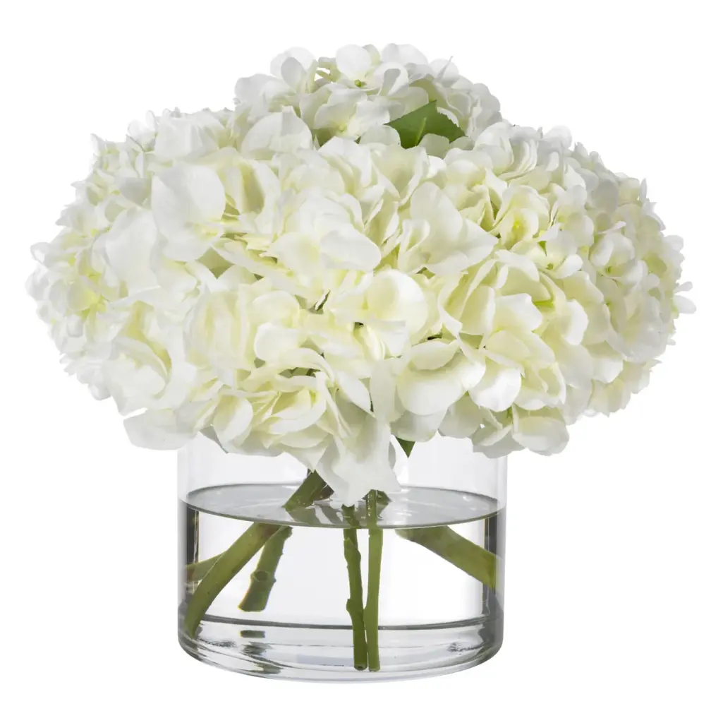 Filled With Large Summertime Blooms, The Savannah Bouquet Shows Off A Variety Of White And Limelight Hydrangea Stems In A Square Glass Vase With Faux Water. Bouquet from the Savannah collection in White finishFilled With Large Summertime Blooms, The Savannah Bouquet Shows Off A Variety Of White And Limelight Hydrangea Stems In A Square Glass Vase With Faux Water.Width: 14.50"Height: 13.00"Length: 14.50"Weight: 6.50 lb
