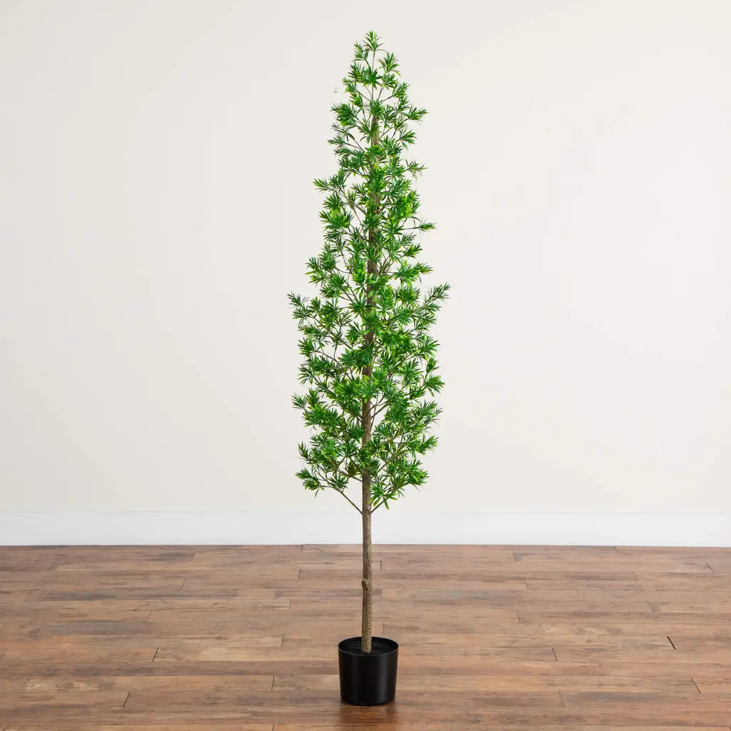 Enhance your outdoor or indoor space with this UV-resistant artificial podocarpus tree. Crafted from high-quality materials, this tall and slender tree boasts lifelike green foliage that adds a touch of elegance to any setting. Perfect for your patio, front porch, or even inside your home, this tree's UV-safe design ensures it will remain vibrant and beautiful, season after season. Standing at 6-Ft tall, whether you place it in a decorative planter by your front door or on your patio to complement your outdoor furniture, it'ss an effortless way to elevate your decor. Its sleek, modern shape makes it a versatile addition to both contemporary and traditional styles, while its low-maintenance nature means you can enjoy the beauty of nature without any hassle.
