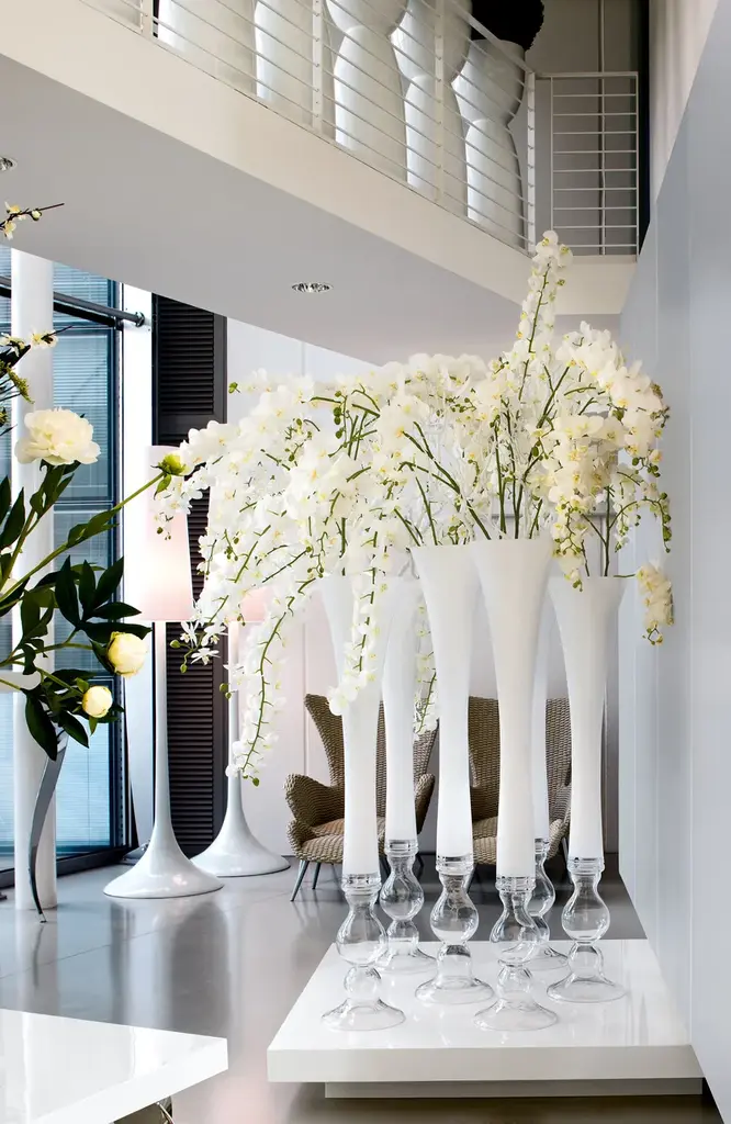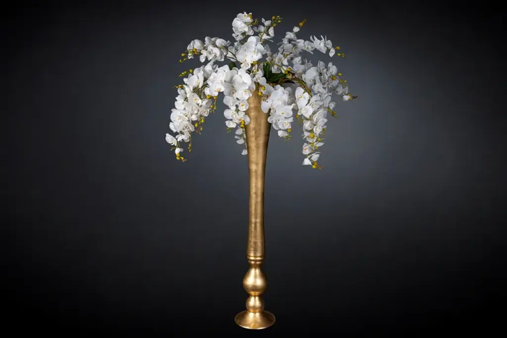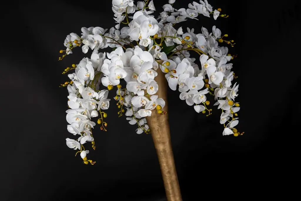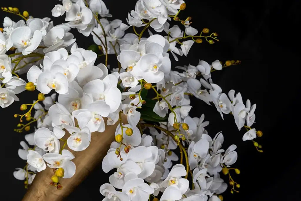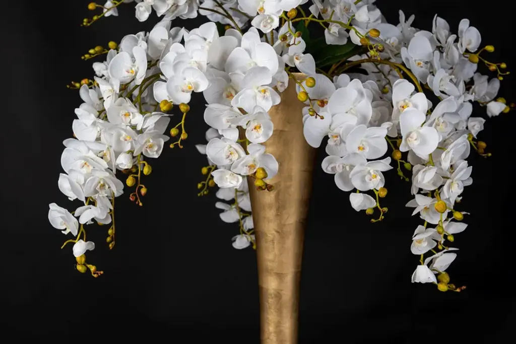 Vase Madame Butterfly is an artificial flower arrangement in clear glass vase with faux flowers, created by our floral designers. Ideal for interior decor or weddings and events setting.