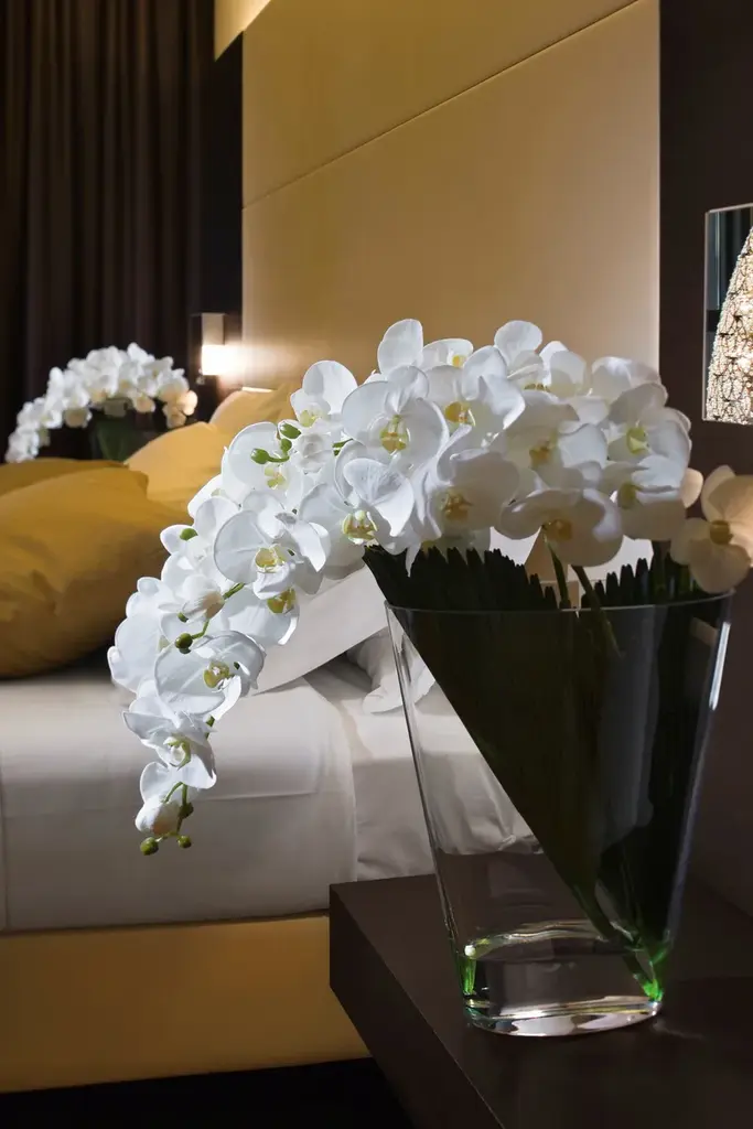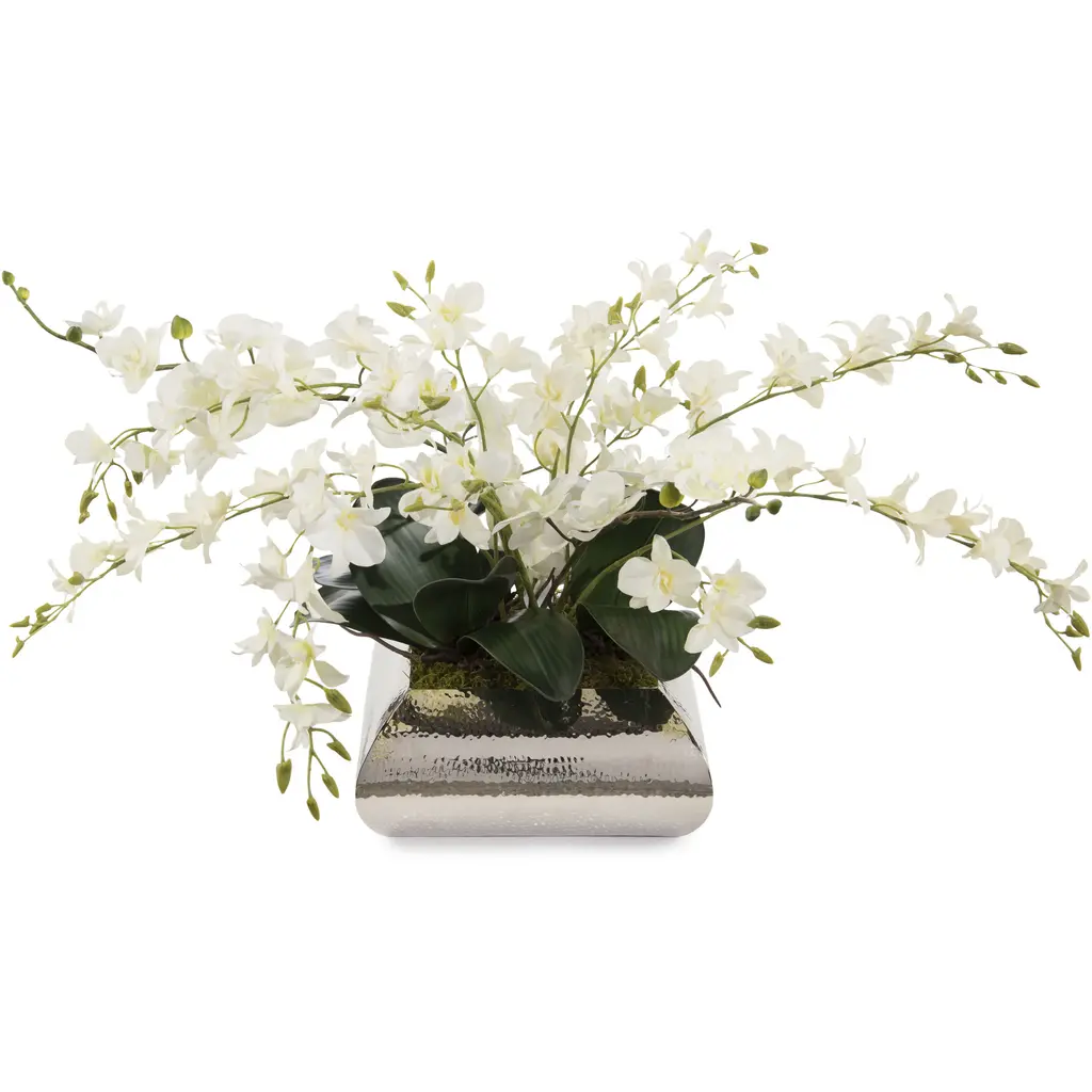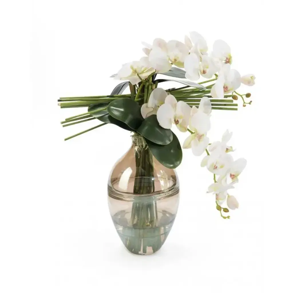 Vaso Phaleno Cascade is a flower arrangement with artificial plants & flowers for interior decorating, wedding & events, home decor.