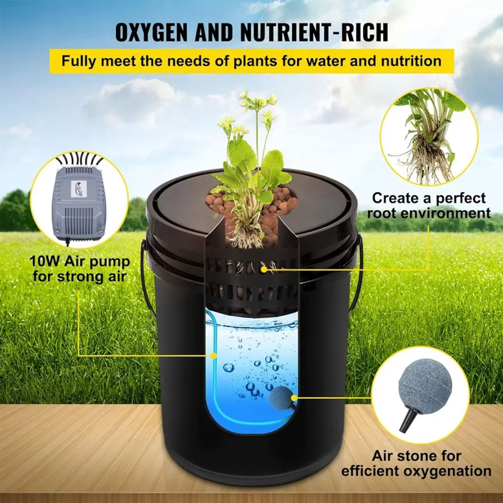 Vevor Dwc Hydroponic System Deep Water Growing Bucket With Powerful Air Pump, Air Stone, And Water Level Device For Plant Germination Kits, Black