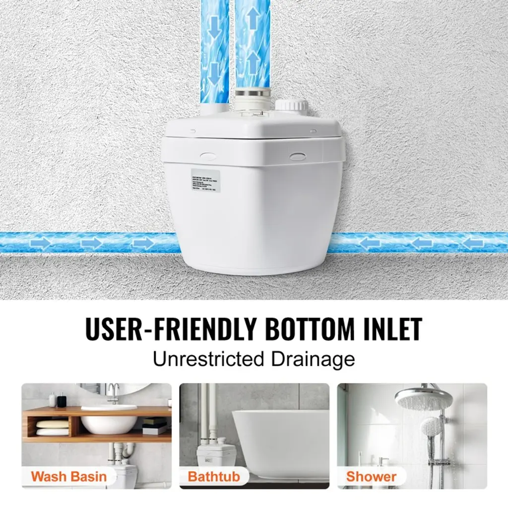 Vevor Utility Sink Pump, 1/3 Hp, 120-volt, 1750 Gph Flow, 18 Ft Head, Under-sink Sump Pump System With Copper Wire Motor, White