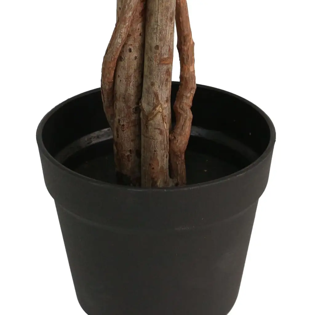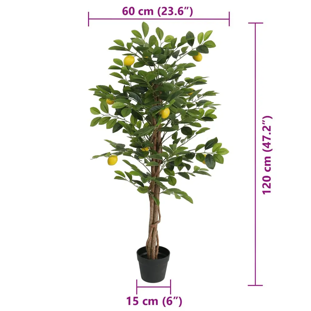 This Artificial Lemon Tree is a fab addition to any space, bringing lush greenery into your home, office, or patio. Standing at 47.2 in tall, this faux tree looks just like a real lemon tree with its vibrant foliage, making a statement wherever it’s placed. Full and Lush Look: The three trunks are expertly crafted to give a bountiful appearance that resembles a natural lemon tree in full bloom. This fullness adds depth and liveliness to your decor, bringing brightness to any room.Versatile Decoration: Ideal for various settings, this artificial tree easily enhances the vibe of living rooms, bedrooms, and even offices. Its modern design harmonizes with contemporary decor, lending a welcoming feel to your surroundings.Zero Upkeep Needed: Unlike real plants, taking care of this artificial lemon tree is a breeze. No need for watering or sunlight, just a quick wipe down with a cloth to keep it fresh and vibrant. It’s a stellar choice for busy lives or anyone who struggles to keep plants alive.Quality Materials: Made from tough polypropylene and genuine eucalyptus wood, these materials are chosen to ensure it looks great and lasts. The result is a product that’s not just pretty but also stands up over time.Stylish Pot Design: The included modern pot complements the look of the artificial lemon tree. Together, they create a seamless focal point that draws attention and enhances your indoor or patio decor.