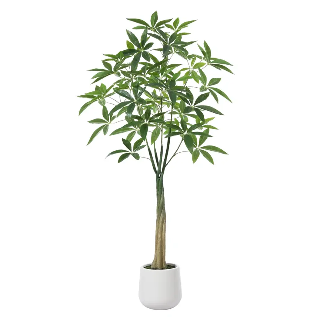 This lifelike Artificial Fortune Tree stands tall at 57.1 in, offering a vibrant addition to your home or office decor. With its smooth texture and richly painted leaves, it instantly brightens any space while requiring no maintenance, making it ideal for busy individuals or those with limited gardening skills. Realistic Appearance: Made from top-notch synthetic materials, this artificial plant looks just like the real Fortune Tree, adding a lifelike touch to any room.Sturdy Container: Comes with a strong pot, so it’s stable and won’t topple over, making it a reliable decor piece for your home or office.Versatile Placement: Great for different settings like living rooms and offices, adding a bit of calm and style, ideal for both homey and professional spaces.Effortless Decor: This artificial tree is hassle-free – it doesn't need any watering or light, so you can enjoy its beauty without the work of real plants.Stylish Modern Design: With a sleek look that features clean lines and minimal fuss, it fits right into modern decor while bringing a bit of nature indoors.