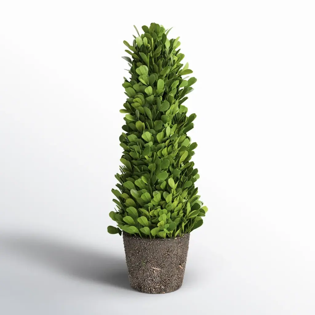 This artificial boxwood plant adds a lovely green look to any space. Standing at 39.4 in, it's a versatile decoration that fits well in different settings, from modern sunrooms to balconies, with zero need for light or water. UV-Resistant Materials: Made from special materials that hold up against UV light without fading, so this plant keeps its bright green color and looks great even in harsh sunlight. Realistic Appearance: Smartly crafted to replicate the details of real foliage, this boxwood plant brings a touch of calm and beauty, enhancing the decor of any indoor or outdoor space. Multipurpose Use: Perfect for many setups, from sprucing up living rooms to adding a bit of nature on balconies, this plant can refresh your home or garden easily. Easy Maintenance: Unlike real plants, this fake option needs no watering or pruning, making it a fantastic low-maintenance choice for busy lifestyles while still making your space lovely. Stylish Pot: Comes in a sleek pot that complements its design, so you can display it anywhere without needing to plant it again.