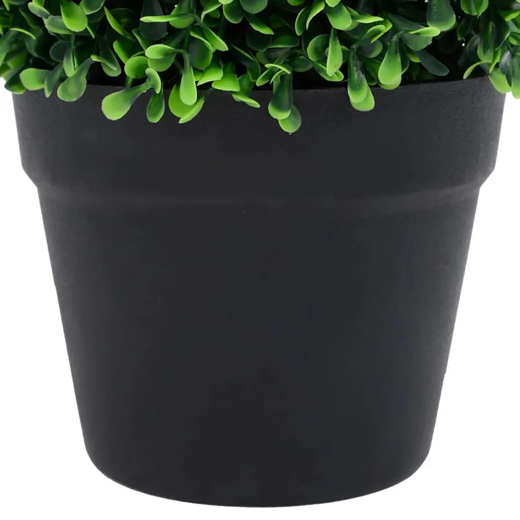 This lovely pair of artificial boxwood plants brings an elegant, lifelike vibe to any space. They're perfect for brightening up patios or adding a splash of style indoors. With their fresh green look and fun ball shape, they fit in well with any décor. The realistic look creates a welcoming atmosphere indoors and out, letting you enjoy greenery without the upkeep.Made with UV resistant stuff, these plants are tough, keeping their lush look even in direct sunlight.Perfect for all sorts of places, whether balconies, patios, or as indoor decor, enhancing the overall look of your spaces.This set comes with two beautifully designed boxwood plants in stylish pots, making it an easy addition to your decor.Standing 14.6 in tall and 11.6 in wide, these plants strike the right balance, adding interest without overwhelming the area.