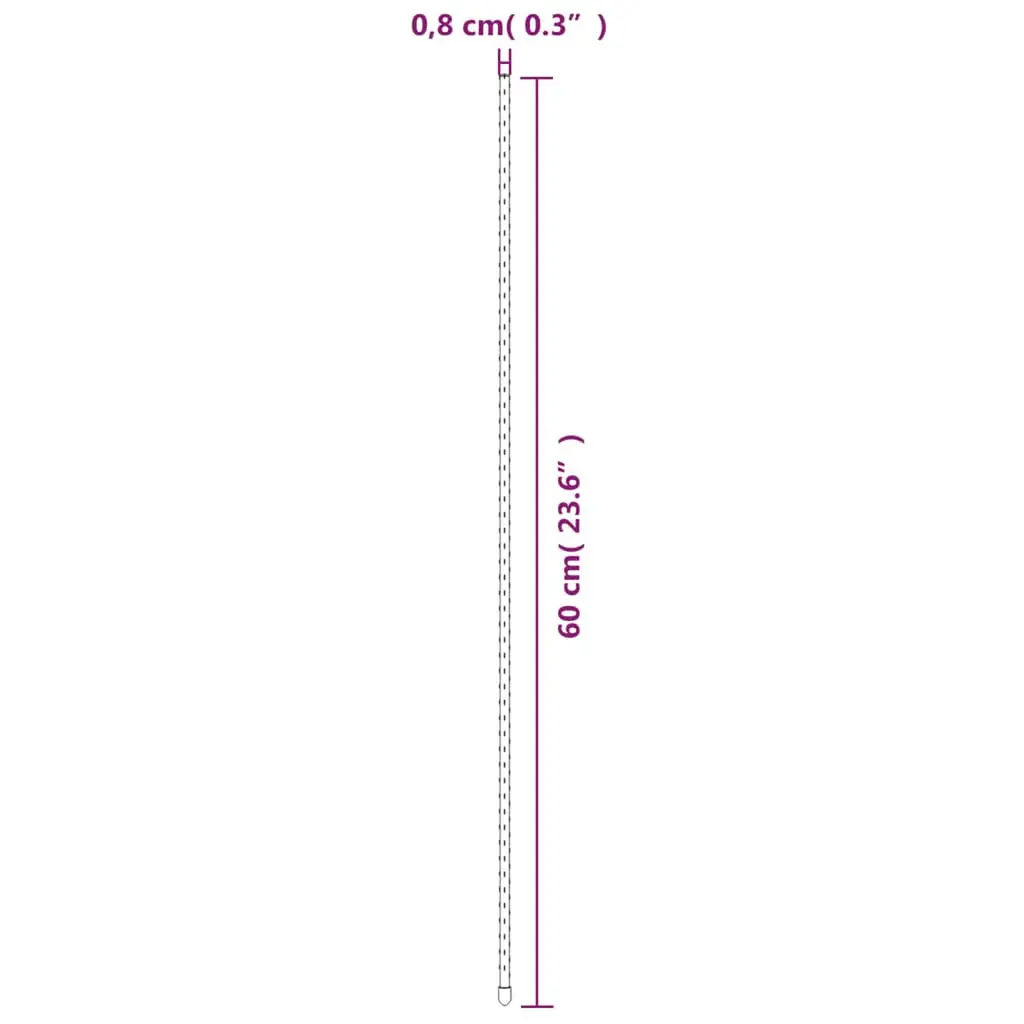 This set of 30 green garden plant stakes is built to give solid support for different types of climbing plants. It's a must-have tool for both gardening beginners and veterans. Made from steel with a smooth polypropylene coating, these stakes are tough and fit right into your garden. High Durability: The powder-coated finish makes these stakes tough and long-lasting, so they stay sturdy season after season.Versatile Design: Great for supporting plants like cucumbers and beans that need a solid base for upward growth, boosting your garden’s productivity.Ideal for Various Settings: Whether on a balcony or in a conservatory, they bring functionality without compromising on looks.Easy Maintenance: Just wipe the metal parts with a damp cloth to keep your plant stakes looking good for your gardening needs.Standardized Dimensions: Each stake is 23.6 in tall and 0.3 in thick, giving a neat and tidy appearance to your plant arrangements.
