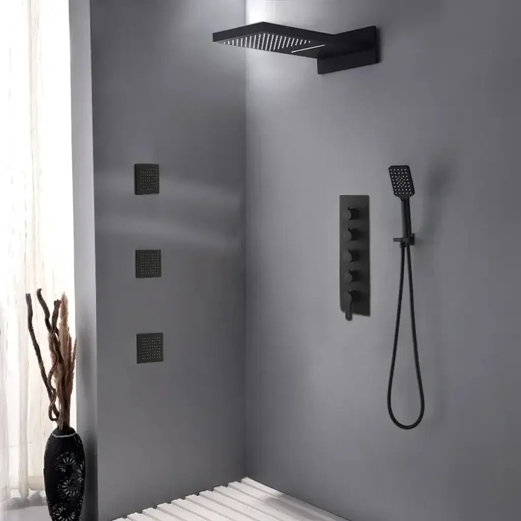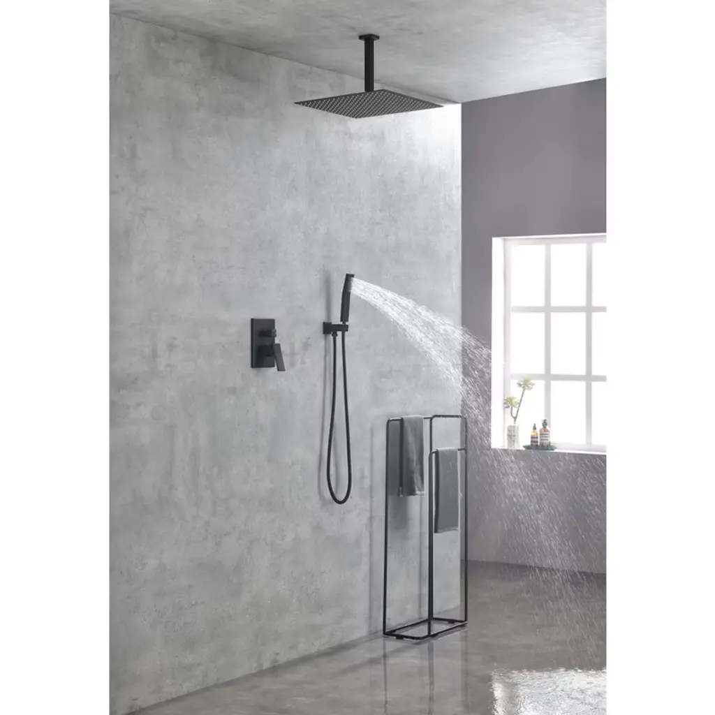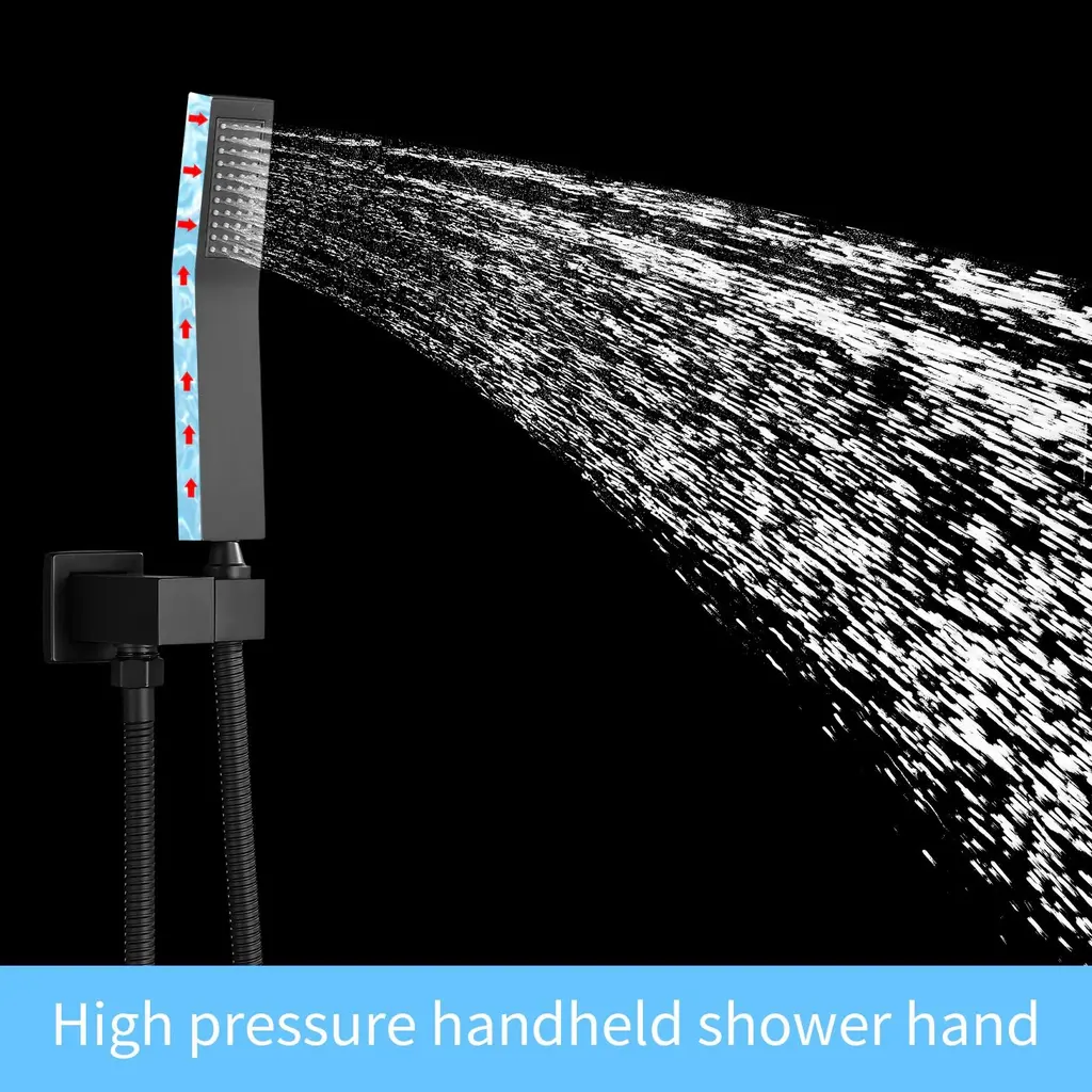 Product Features· Includes: L Style Brass Handheld Shower Head,12 Inch304 Stainless Steel Rain Shower Head and Solid Brass Shower Mixer Valve .· 16 Inch (40cm) Metal Shower Arm and 59 Inch Shower Hose, Concealed installation Brass Shower Bracket Holder .· Nice plated finish offers a sleek look, ensuring corrosion resistance and durable.· Air energy technology offer consistent powerful rain shower even under low water pressure..Dimensions1. Item Weight: 12.57pounds2. Package Dimensions: 18.9x14.96x9.94in3. Is Discontinued By Manufacturer: No4. Size :12 Inch5. Color: Black6. Finish:Black7. Material: Stainless Steel, Brass8. Shape:Rectangle9. Installation: Method Wall-Mounted10.Item Package Quantity: 1 11.Included Components: Shower arm, rain shower head, handheld shower head, shower valve faucet, shower bracket holder, shower hose 12.Batteries Included?: No 13.Batteries Required? NoNotice:Manual measurement has been used, there may be some reasonable error.Due to factors such as display equipment and shooting environment, the color of the item may be slightly different from the picture, which is a normal phenomenon, please refer to the actual item.Please confirm whether the size meets your requirements before you buy it!Contact US:After-sales Email Address: dhalcomb@doorise.comIf the item comes with any defect, damage(include damaged in transit) or missing partsand, please contact us with detailed images for free replacement or refund.