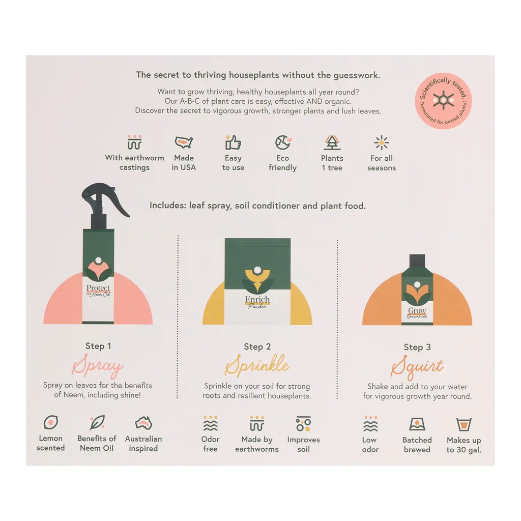Perfect for gardening novices and pros alike, these organic plant care products are formulated to keep your potted plants thriving. The giftable box includes a two-month supply of Grow Concentrate for fast growth, Enrich Powder for soil and root health and Protect Spray for leaf protection. Committed to rebuilding natural environments all over the world, We the Wild plants one tree in a fragile ecosystem for every product purchased.