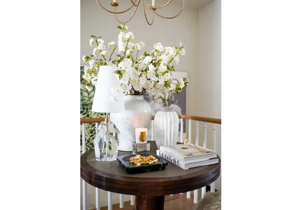 This faux stem lends an everlasting fresh, vibrant look with its lush white blossoms nestled with light green leaves. Pair several together for a full, eye-catching look.
