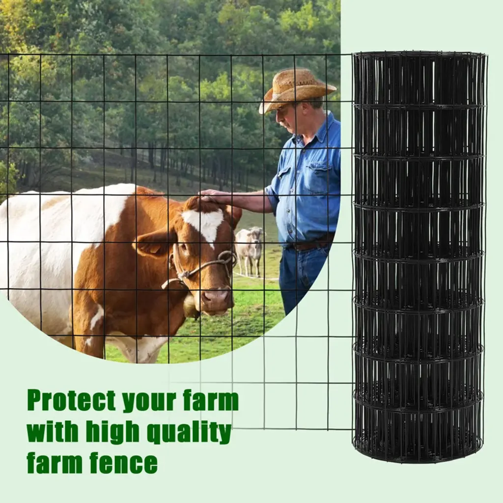 Our welded wire garden fence is made of heavy duty galvanized wire and then coated with vinyl, maximum rust protection and durability. Can adapt to various harsh environments and work for many years without replacement.The wire mesh fence designed to create a protective border for vegetable gardens, flower beds or other plantings to keep out deer, dogs, cats, rabbits or other small animals. The hardware cloth fence can also be used for pet enclosures, hog wire fence panels, chicken wire cages, deer fencing, livestock fencing, temporary fencing and plant supports. It can be utilized to create individual baskets or line elevated garden beds. Great to DIY.Our poultry wire netting is designed with ease of use in mind. It can be nailed to a post, fastened to a stake, or wrapped around a tree. When it's time to take it down, simply remove it, roll it up, and store it for future use. Say goodbye to the hassle of complicated fence setups and hello to a time-saving and effortless solution with our mesh fence.