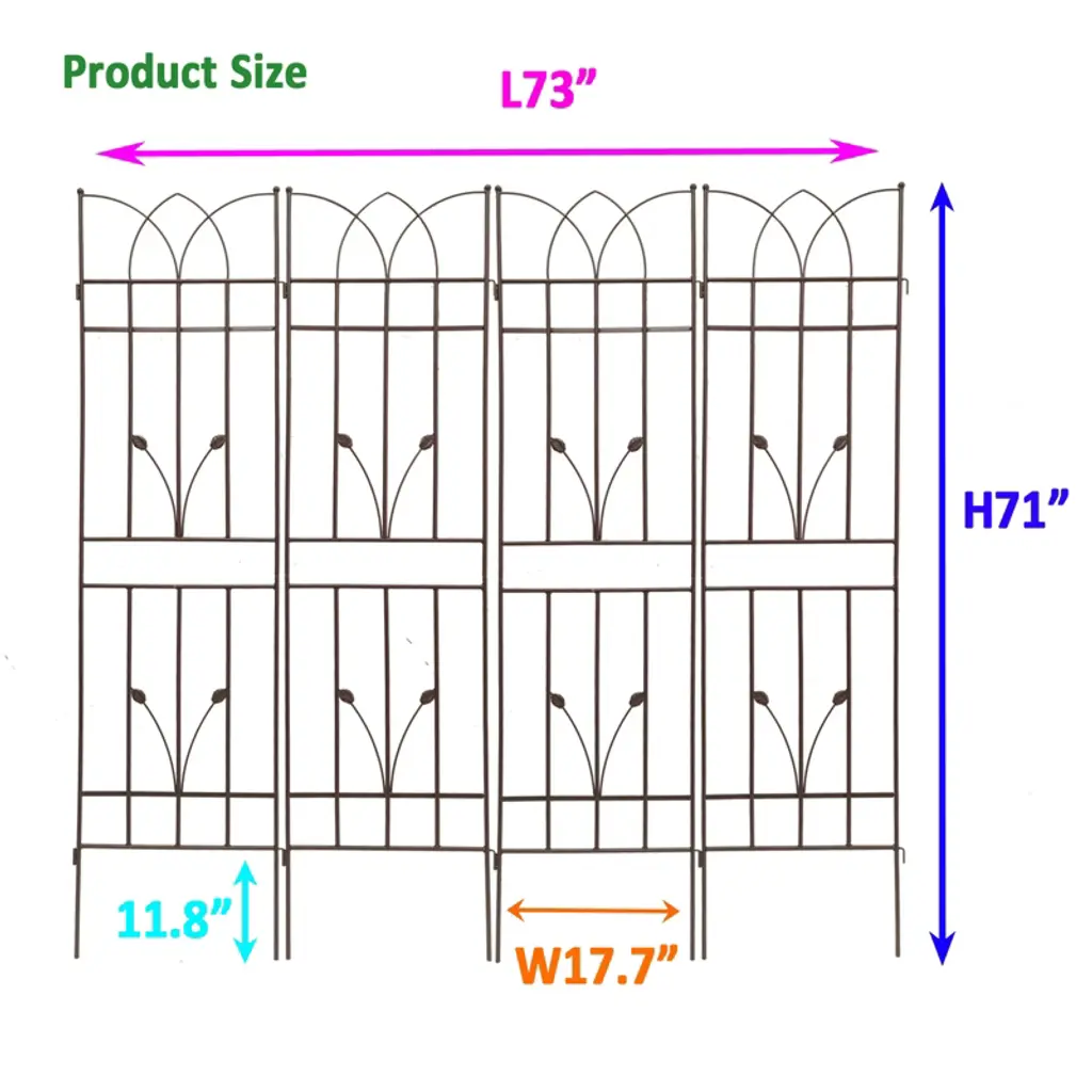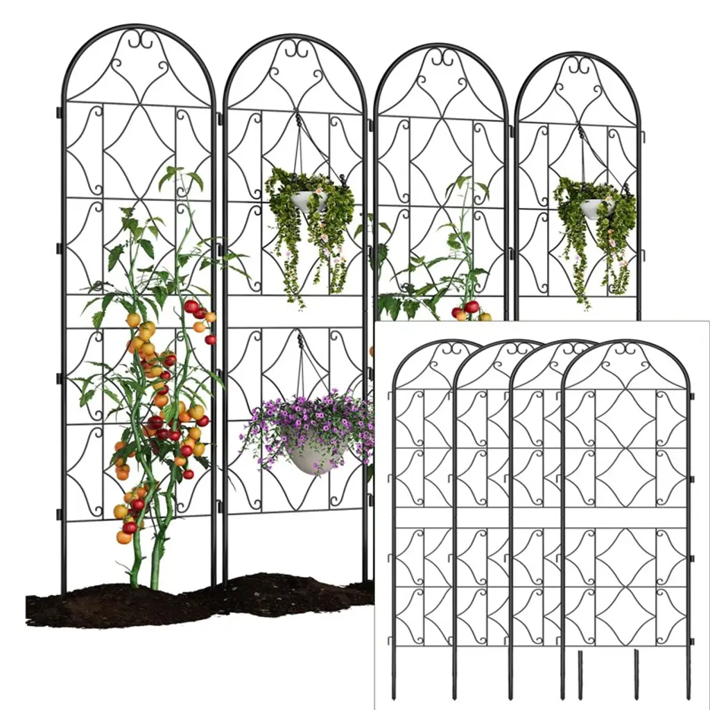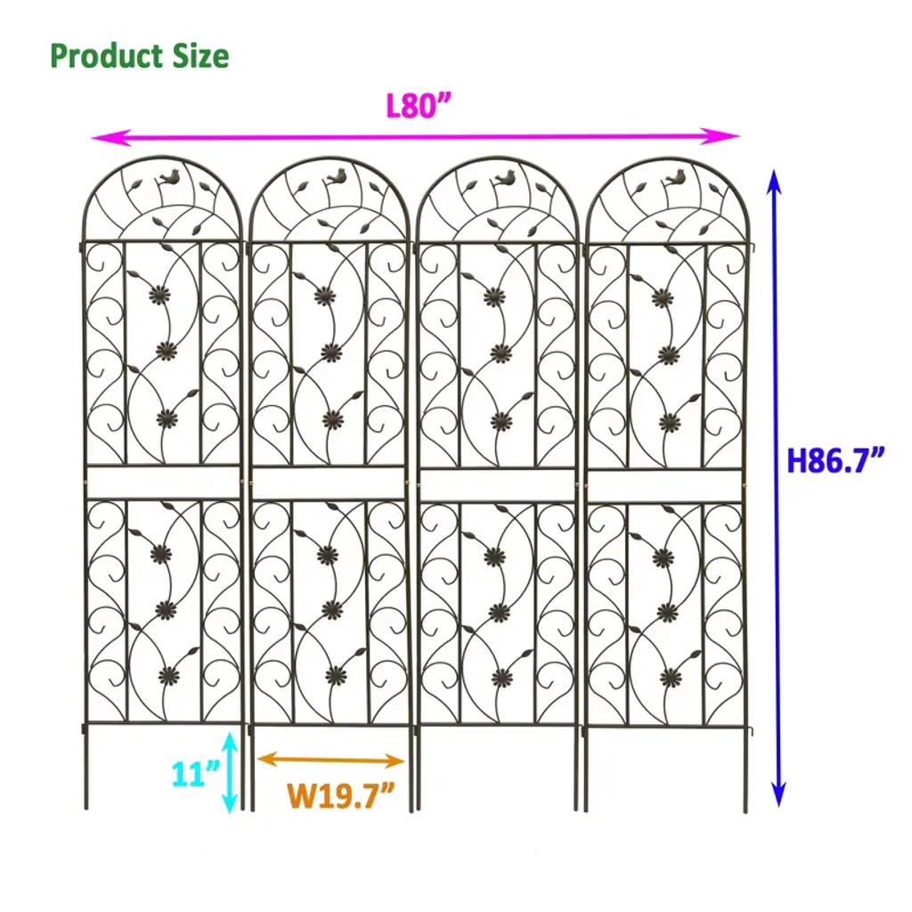 Transform your garden into a flourishing oasis with our 4 Pack Metal Garden Trellis. These 86.7" x 19.7" rustproof trellises are designed to provide sturdy support for climbing plants, flowers, and vines. With their elegant design and durable construction, they add both functionality and aesthetic appeal to your outdoor space.