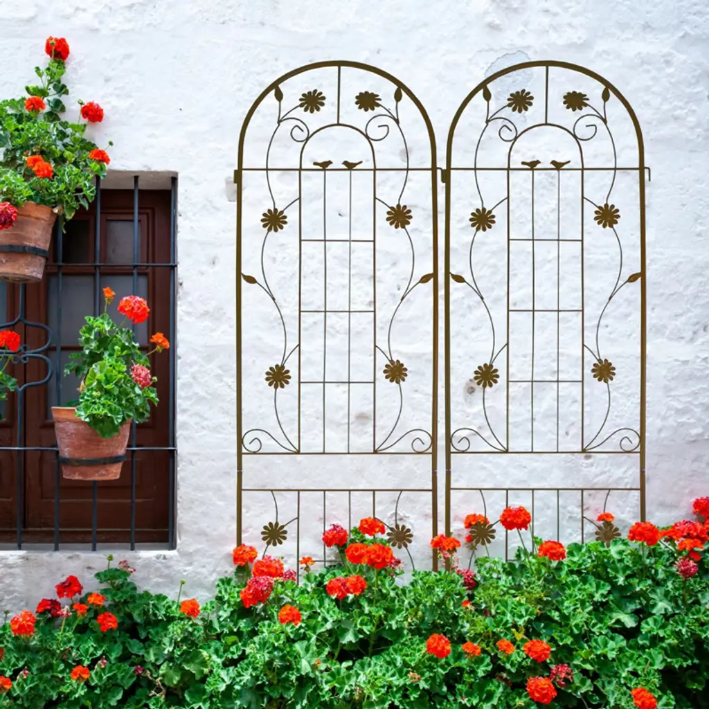 Xinghanzhenxuan Brown 2 Pack Metal Garden Trellis, Rustproof Trellis For Climbing Plants Outdoor Flower Support