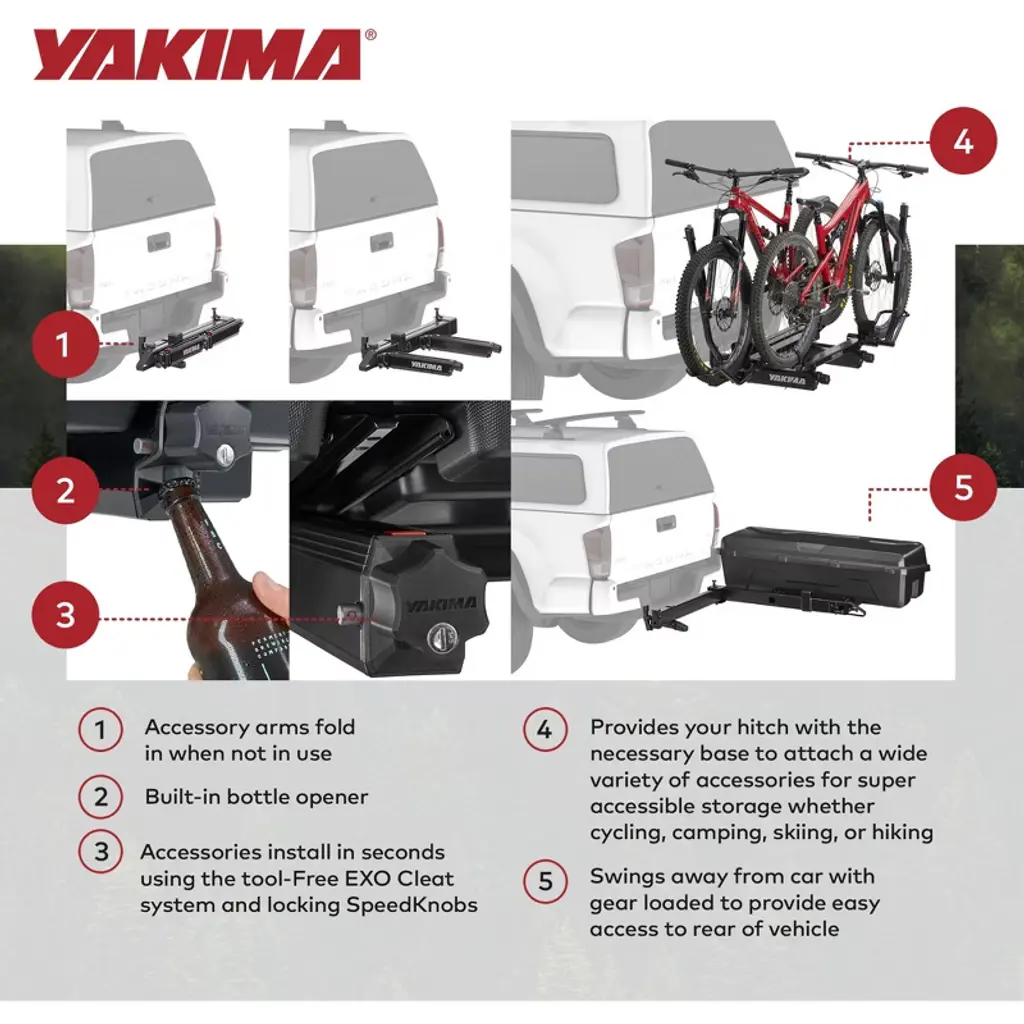 Yakima Exo Swingbase 2 Inch Hitch Swinging Base Rack Storage System With Accessory Arm, Hitchlock, And 2 Sks Locks For Exo Accessories, Black