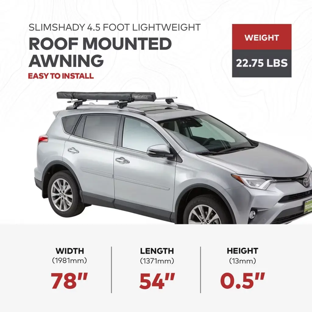 Yakima Slimshady 4.5 Foot Lightweight Roof Mounted Awning With Included Sks Lock, Easy To Pitch, And Super Simple Attachment System