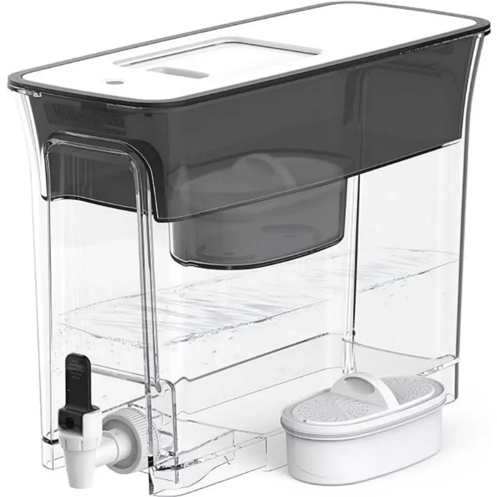 Always be ready for any number of guests with the ZeroWater 52 Cup Ready-Read 5-stage Water Filtration Dispenser, boasting our highest capacity. Its ample volume guarantees an abundance of pure-tasting water, courtesy of two 5-stage water filters removing 99.6% of total dissolved solids (TDS). ZeroWater is IAPMO-certified to reduce lead, the forever chemicals PFOA/PFOS, chromium, and mercury giving you peace of mind that every glass you pour for you and your family will be healthier and cleaner. Featuring Ready-Read Technology, enjoy instant TDS readouts with the detachable TDS meter for peace of mind as filtered water flows through the device's body and the dispenser.