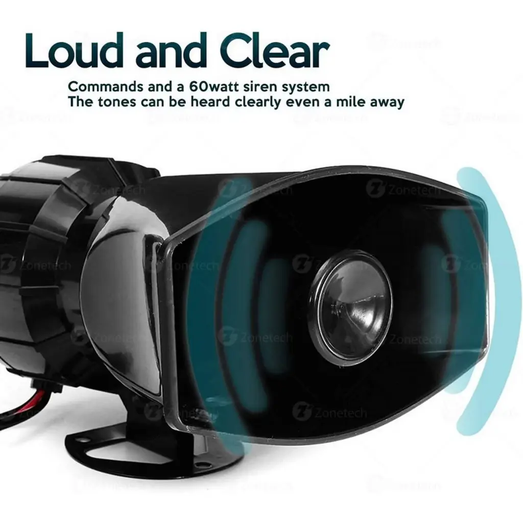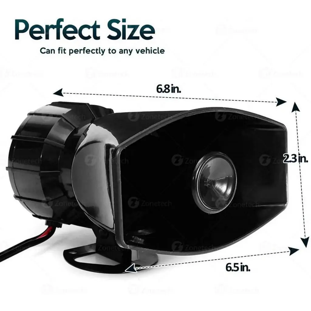 Zone Tech 5 Tone Sound Car Siren Vehicle Horn With Mic Pa Speaker System Emergency Sound Amplifier - 60w Emergency Sounds Electric Horn