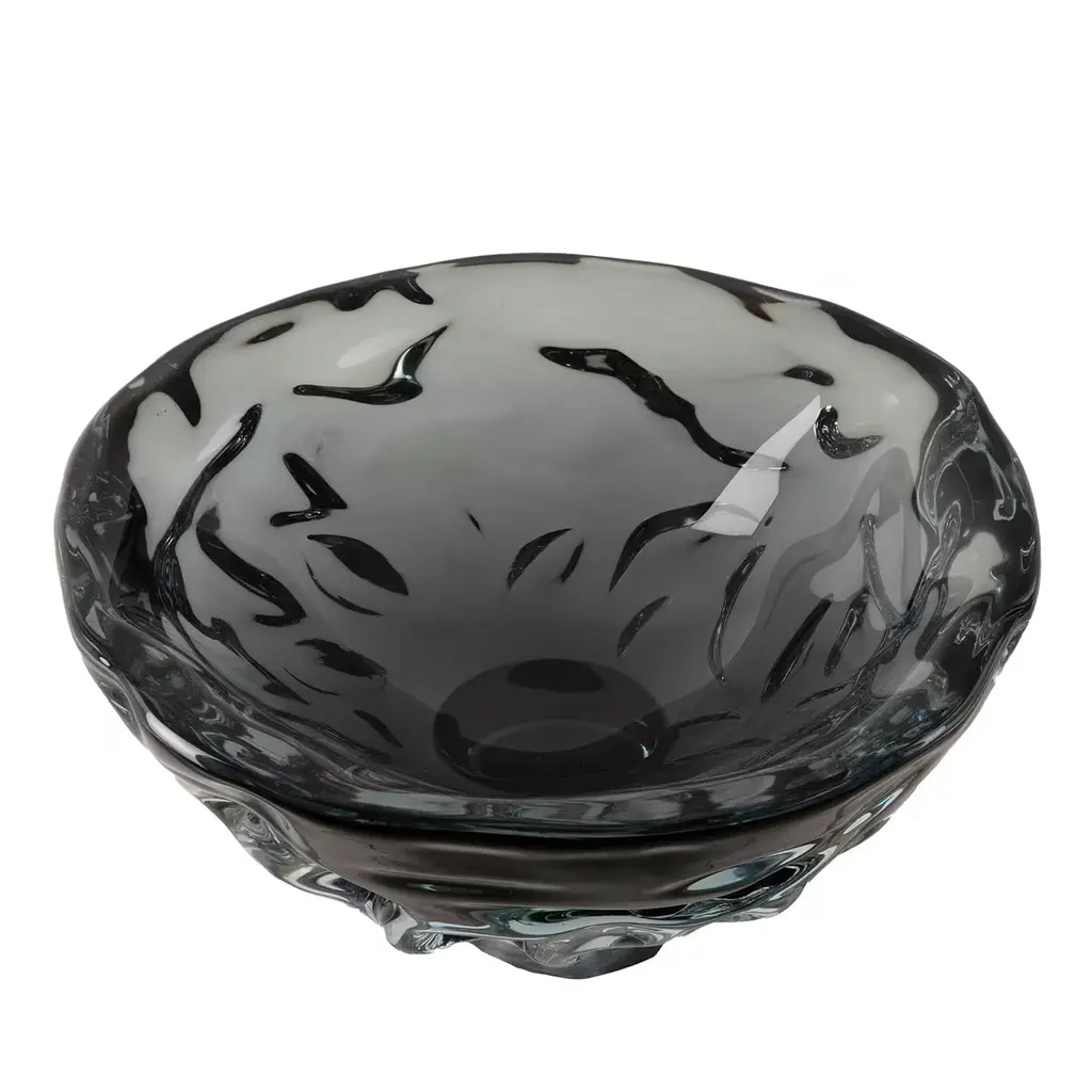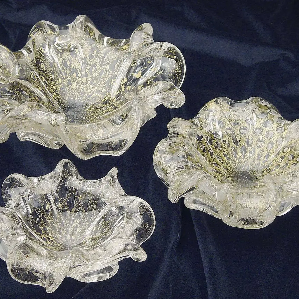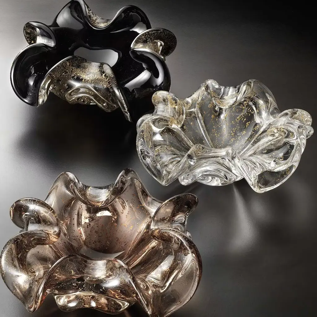 Striking in its simplicity, this remarkable ashtray is a poetic tribute to Italian glassmaking craft and design. From the Aura Collection, this handmade Murano glass piece boasts a scintillating surface created by the gold foil embedded in the undulated glass. This ashtray will make a lovely housewarming or anniversary gift for a loved one.