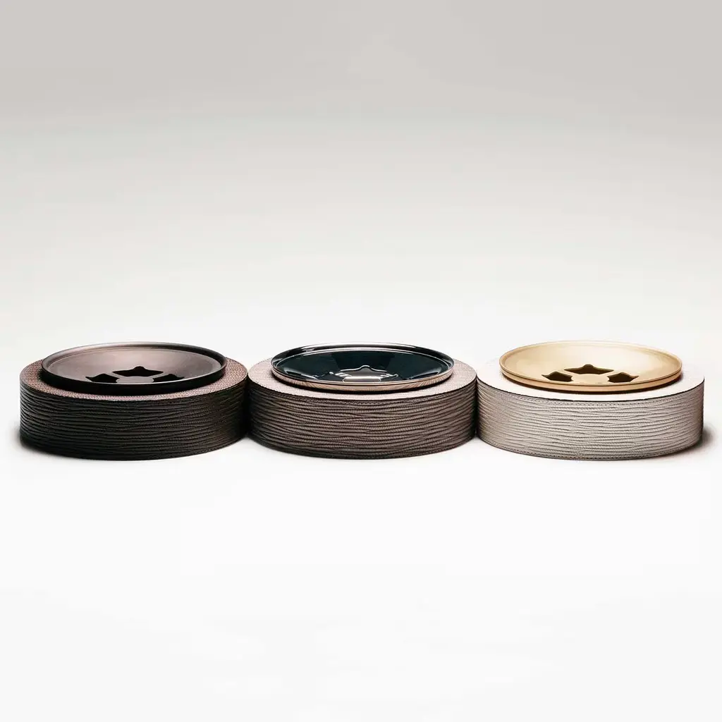 Leather-covered wood structure. The removable brass ashtray is available in three finishes. Metal finishes available: chrome, bronze, brass. Please ask the Concierge for details.